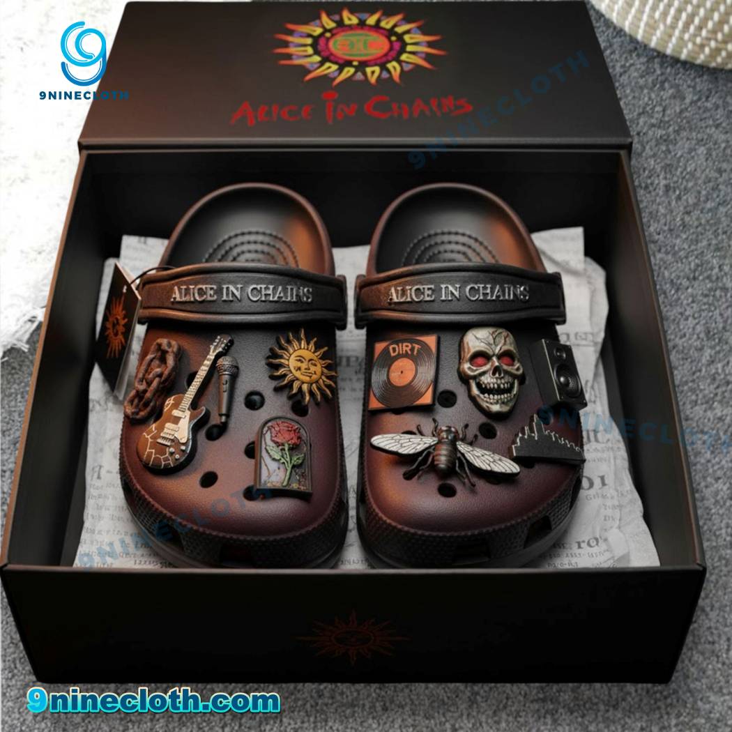 Keywords: Alice In Chains, Crocs, Charms, Grunge, Band Merch, Music, Shoes, Footwear, 9ninecloth, EVA, Resistant, Durable, Comfortable, Alternative, Rock, Concert, Fan Merch, Gifts