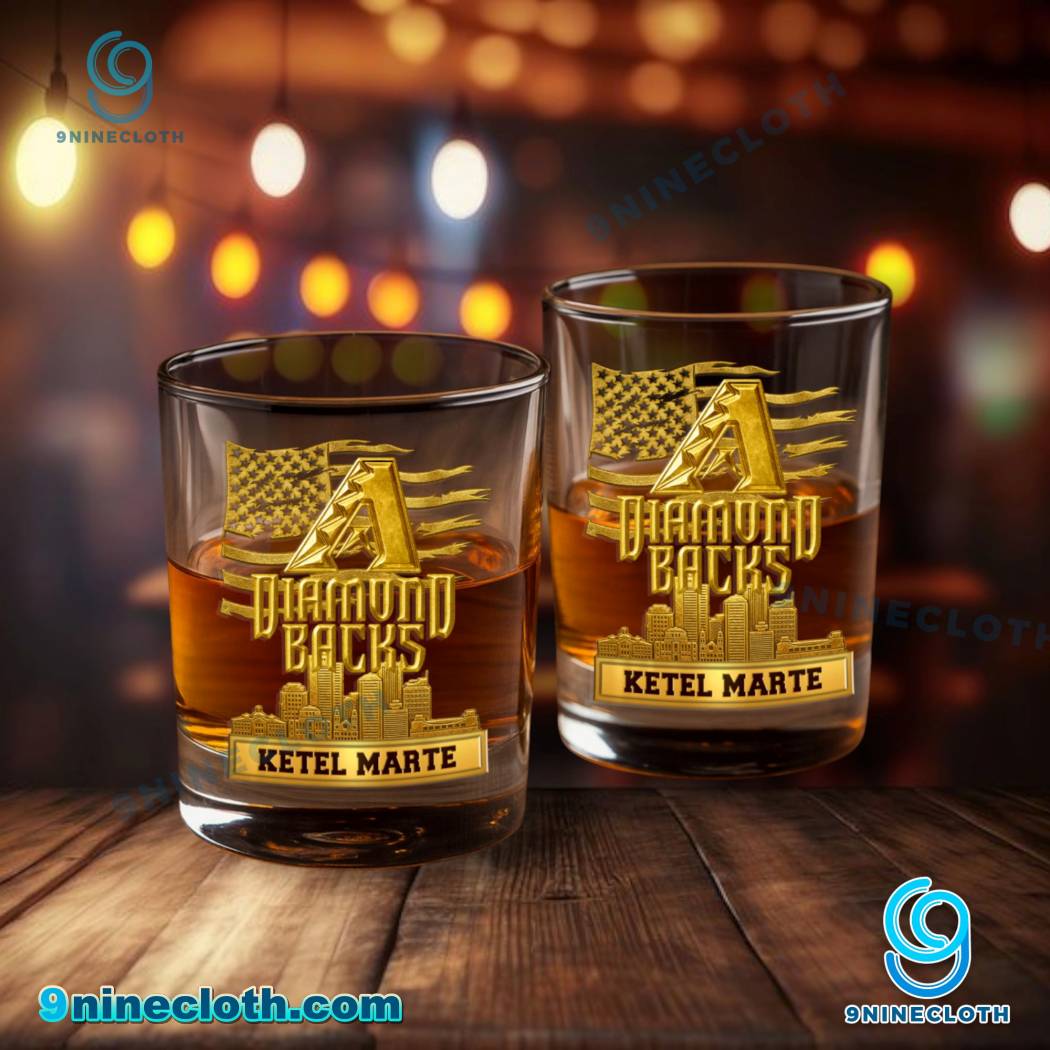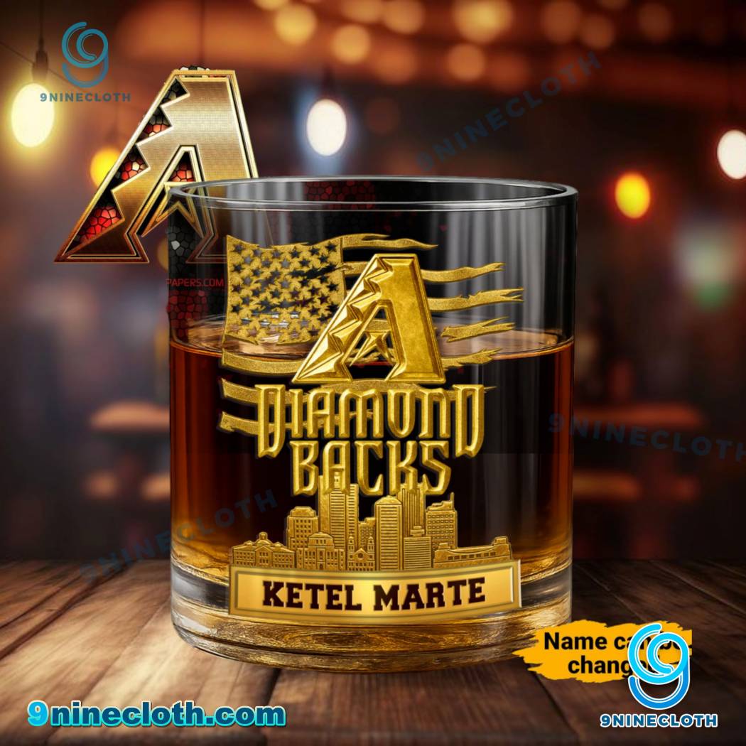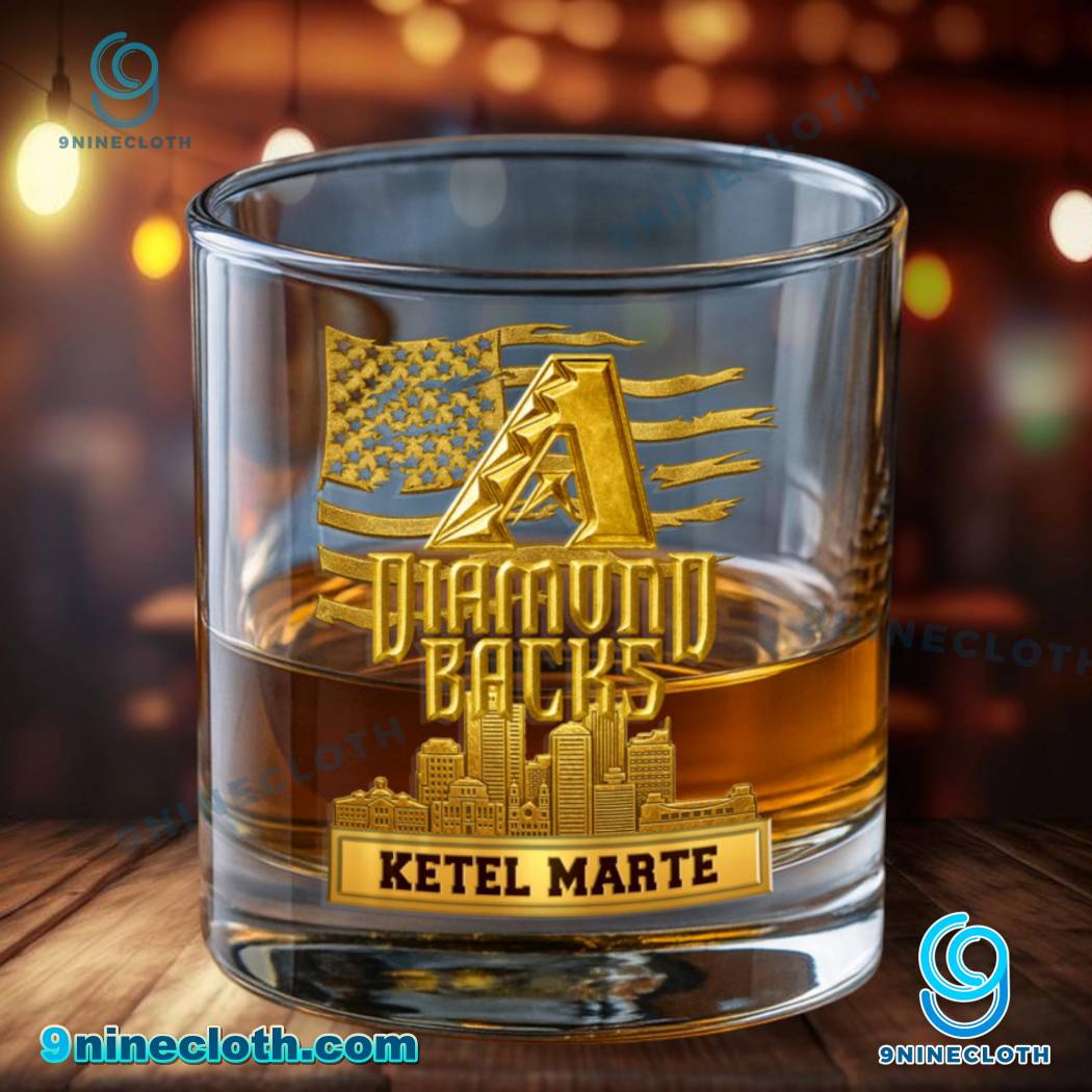 Keywords: Arizona Diamondbacks, Whiskey Glass, American Flag, City Skyline, Personalized Gift, Baseball Fan, Sports Memorabilia, Arizona, 9ninecloth, Home Bar, Drinkware, Premium Glass, Unique Design, Gift for Him, Gift for Her, Baseball Gift.