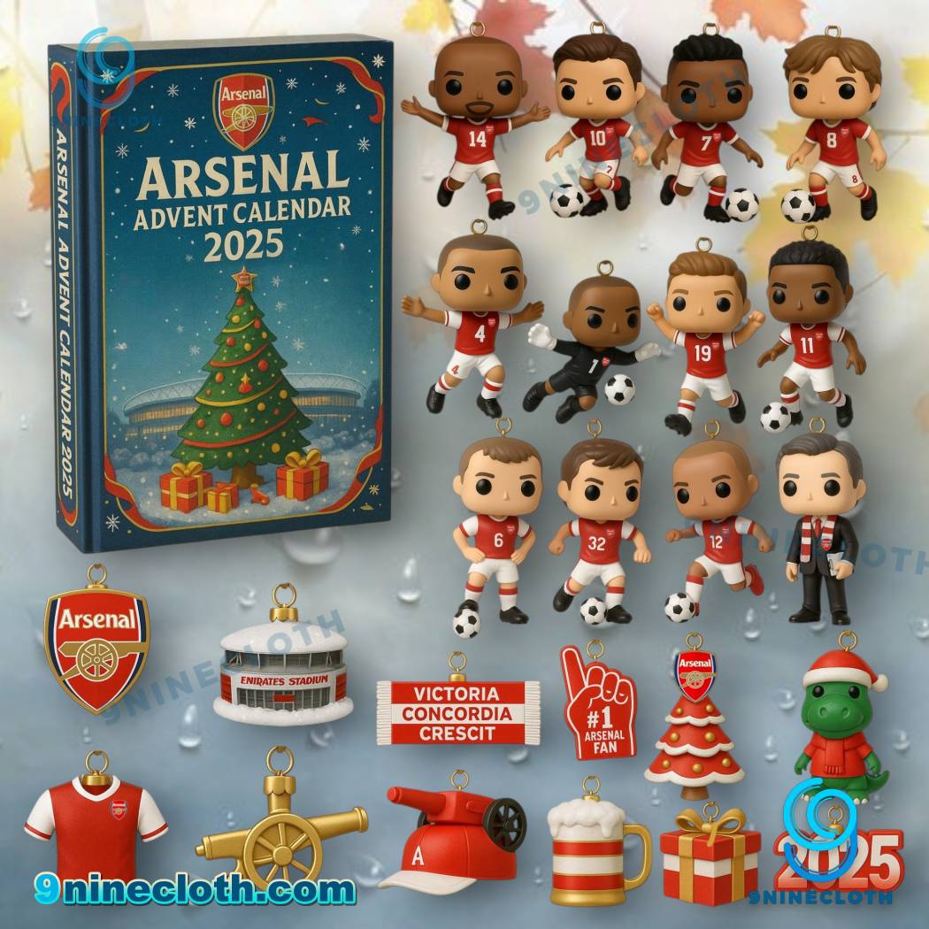 Keywords: Arsenal, Advent Calendar, 2025, Gunners, Football, Soccer, Christmas, Holiday, Gift, Ornament, Handmade, Emirates Stadium, Collectible, Fan Merchandise, 9ninecloth, Arsenal FC, Premier League, Festive, Holiday Season, Mini Ornaments