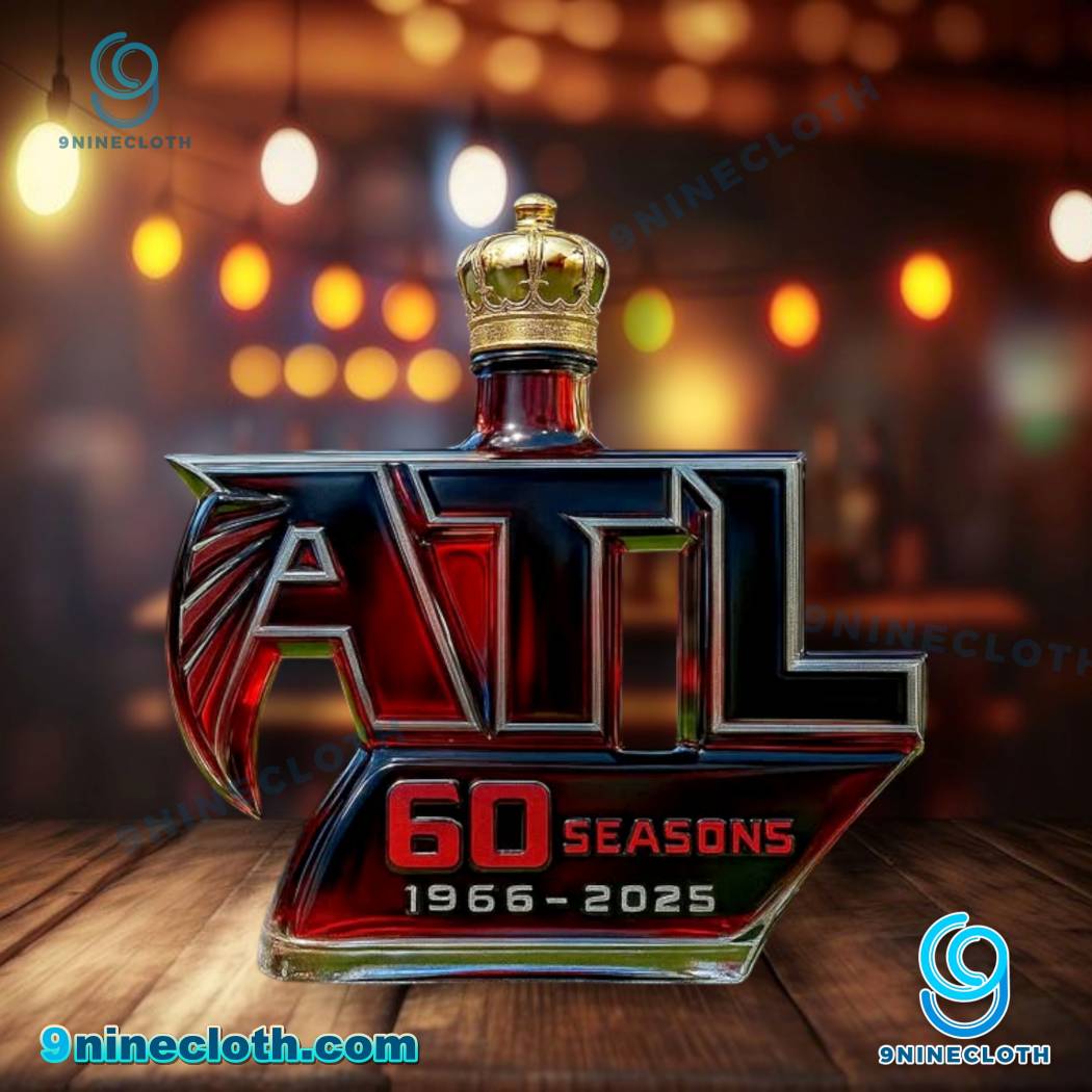 Keywords: Atlanta Falcons, Falcons, football, NFL, whiskey bottle, liquor bottle, barware, sports memorabilia, 60 seasons, 1966-2025, fan gear, gift for fans, Atlanta Falcons merchandise, 9ninecloth.