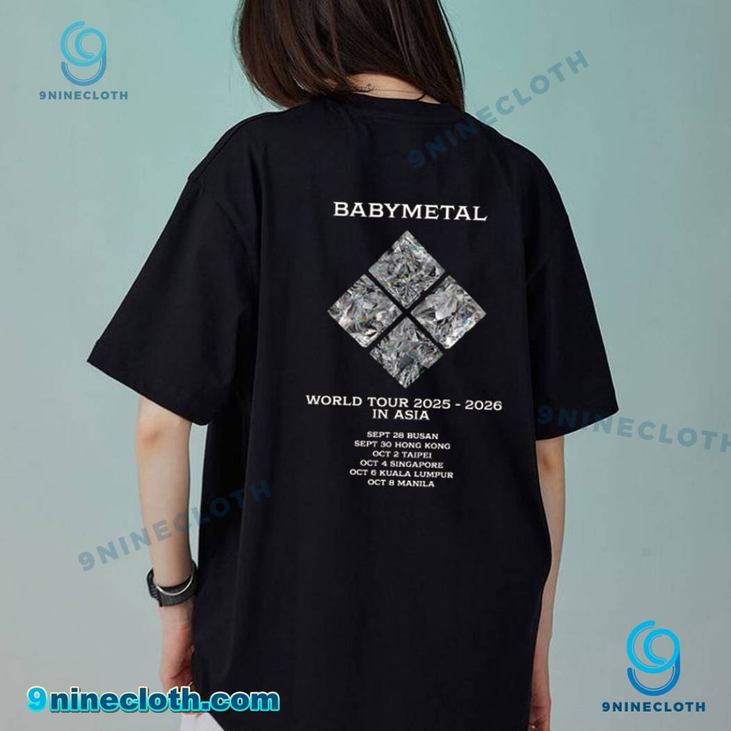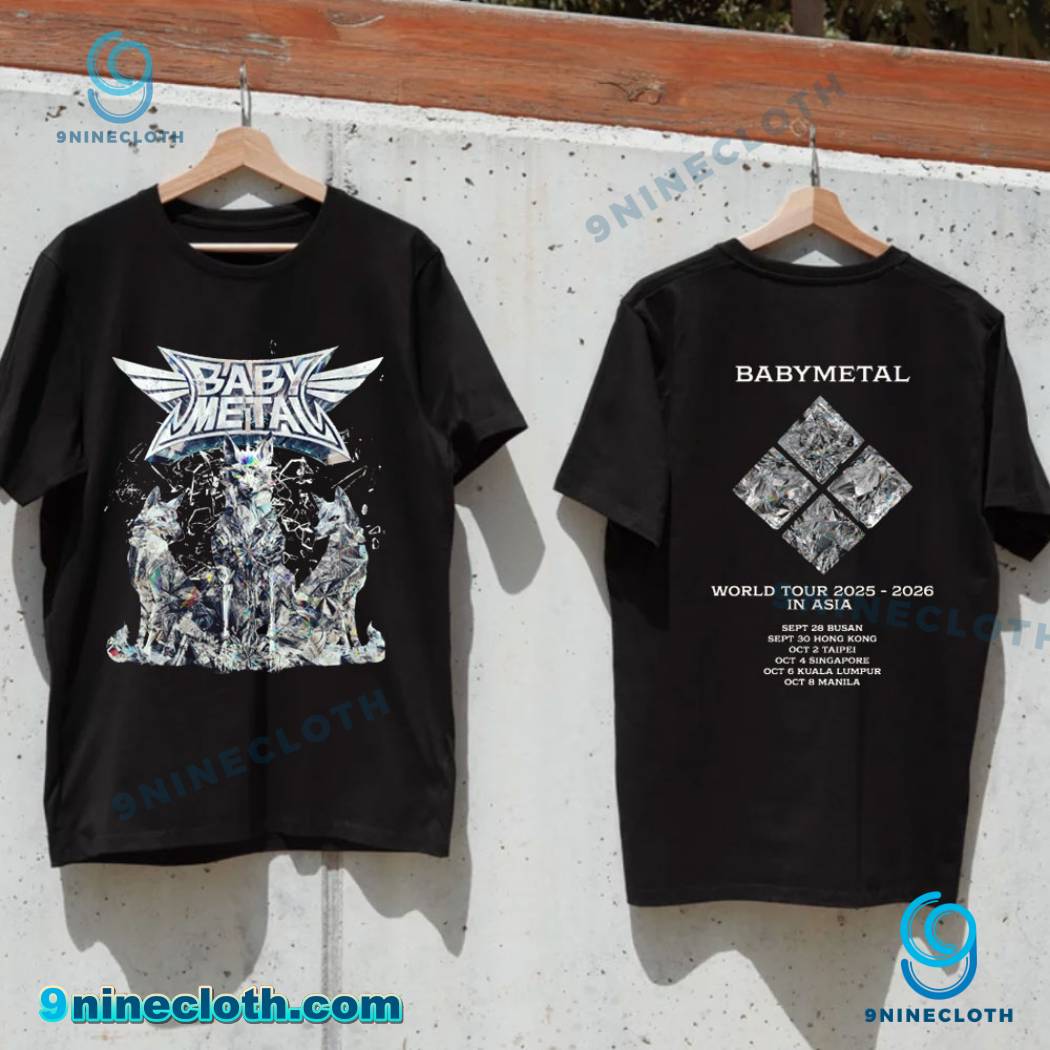 Keywords: Babymetal, Metal Forth Foxes, World Tour 2025-2026, Asia, T-shirt, Kawaii Metal, J-Pop, Metal, Fox God, Music, Band, Concert, Fan Merchandise, 9ninecloth