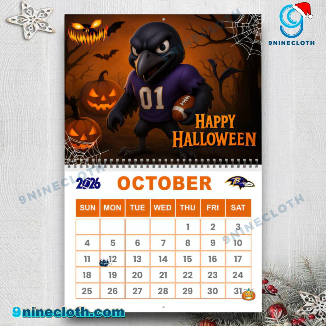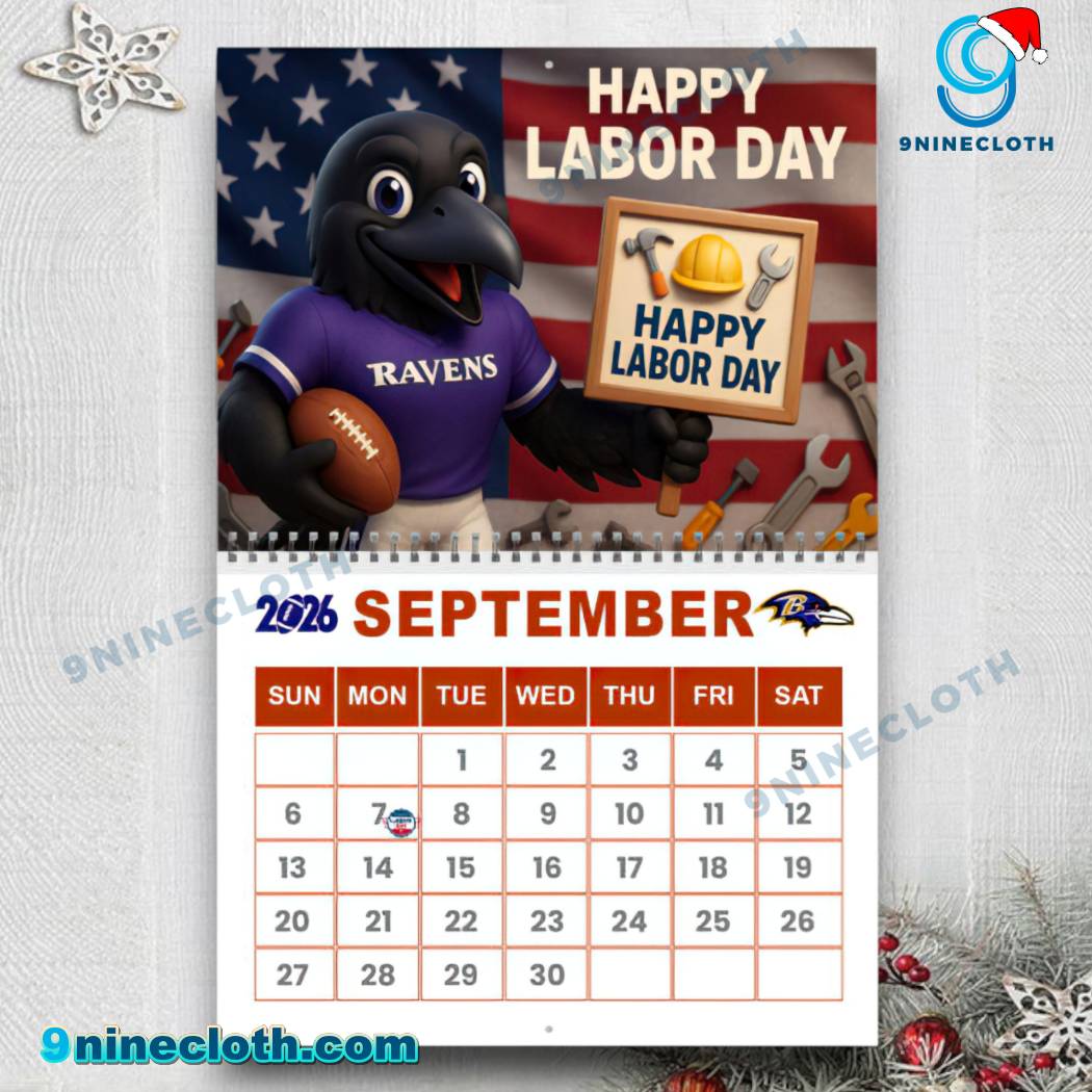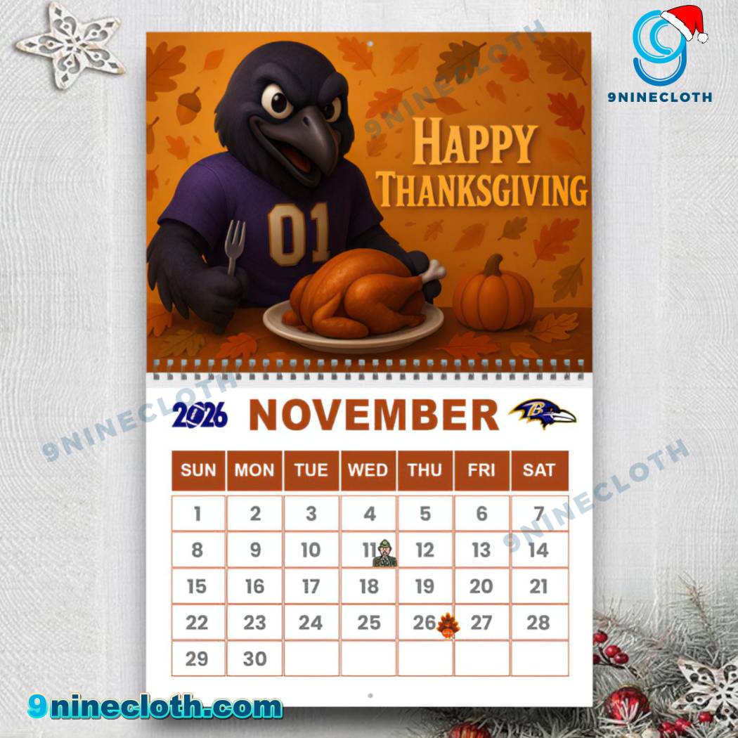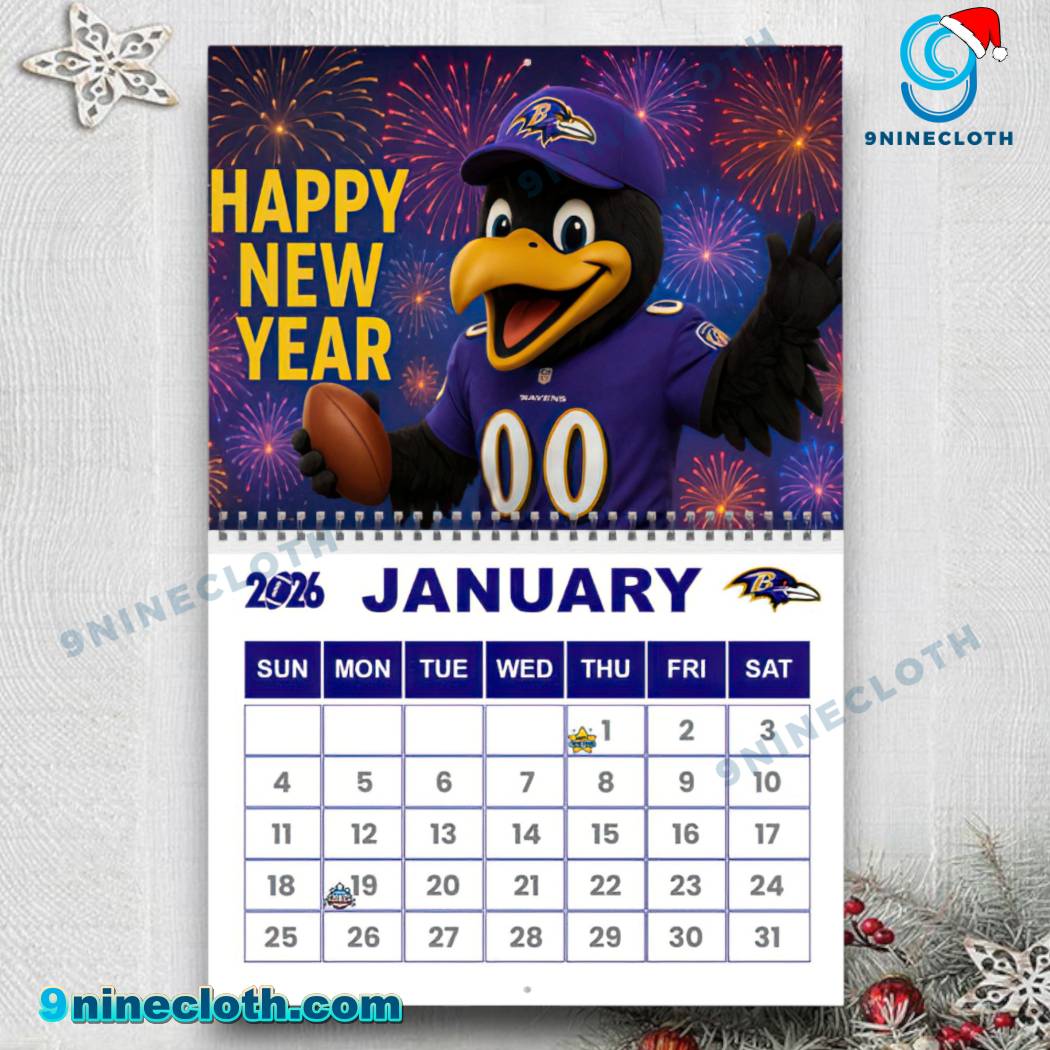 Keywords: Baltimore Ravens, NFL, Calendar 2026, Football, Lamar Jackson, Ravens, Sports, Team Merchandise, Wall Calendar, 9ninecloth, Gift, Home Decor, Office Decor, Organization, Planner, Purple, Black, Bird