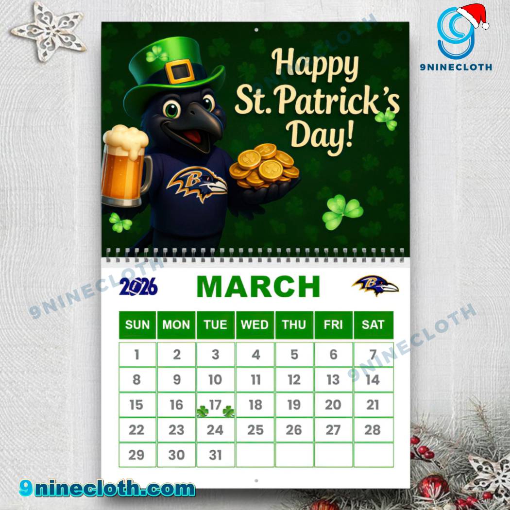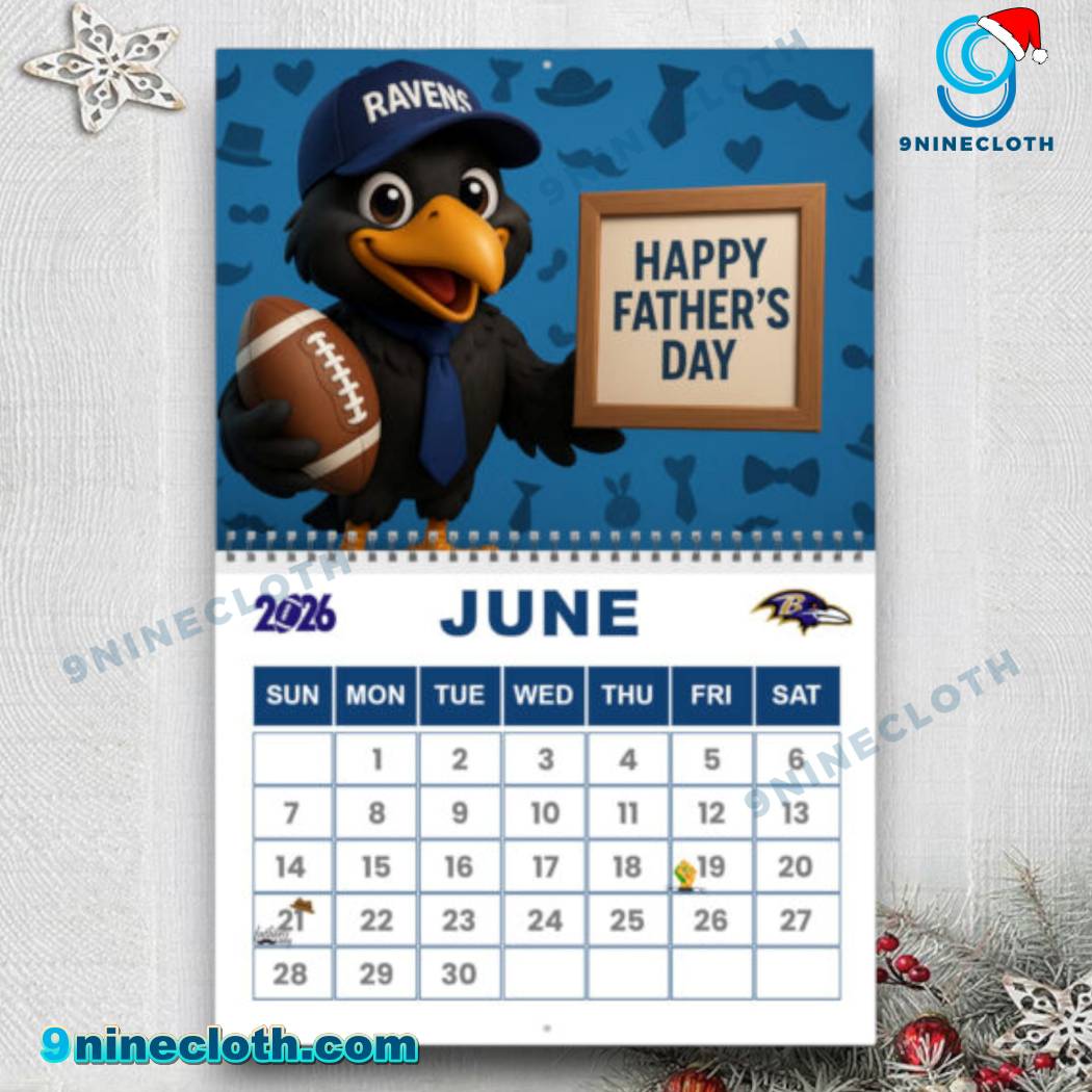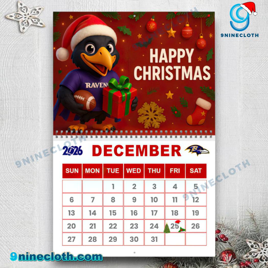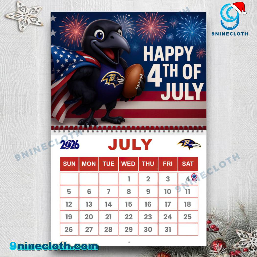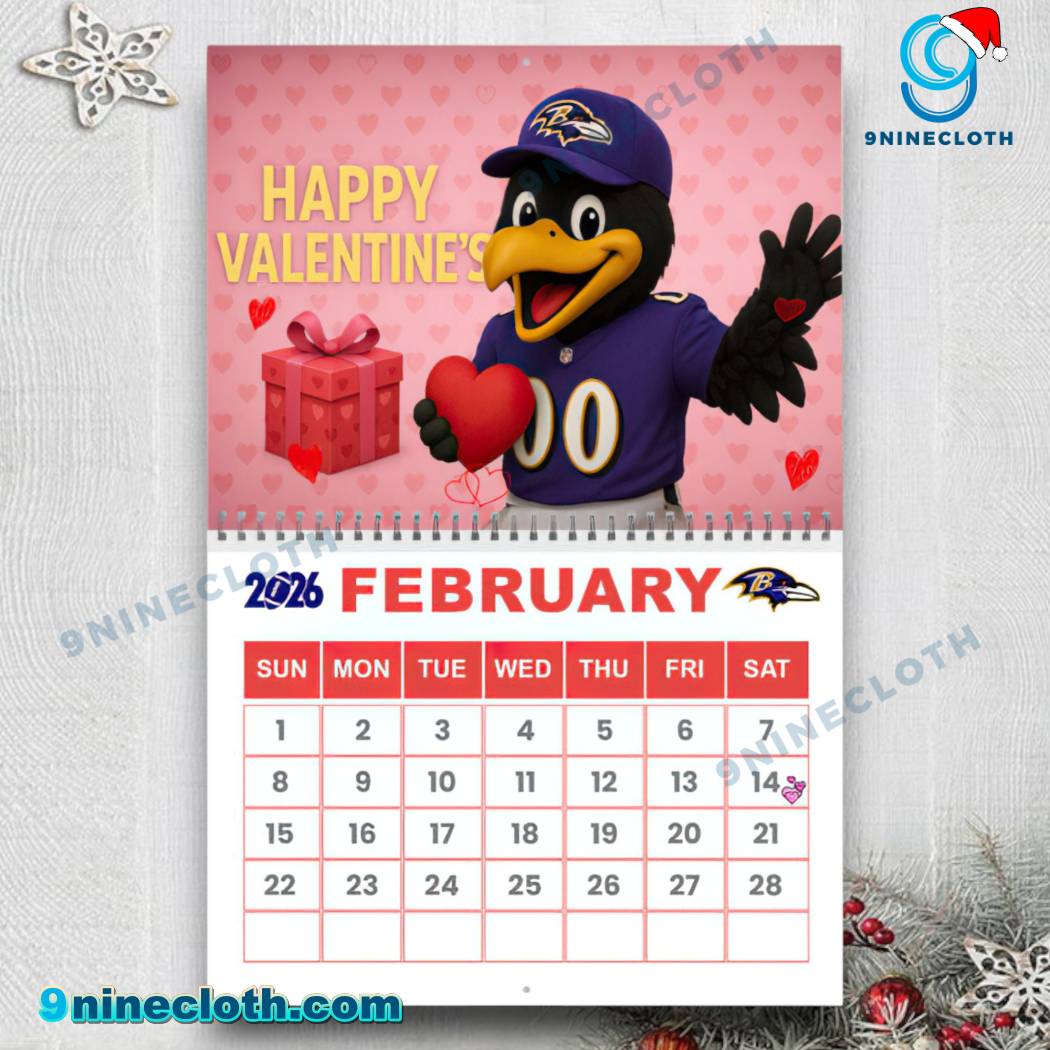 Keywords: Baltimore Ravens, NFL, Calendar 2026, Football, Lamar Jackson, Ravens, Sports, Team Merchandise, Wall Calendar, 9ninecloth, Gift, Home Decor, Office Decor, Organization, Planner, Purple, Black, Bird