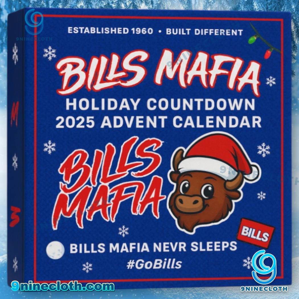 Show your Bills pride this holiday season with the “Bills Mafia Holiday Countdown Advent Calendar 2025.” Order yours today from 9ninecloth and make this Christmas one to remember!
