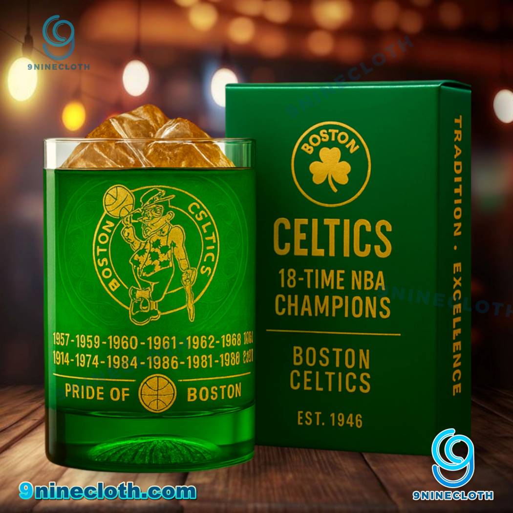 Keywords: Boston Celtics, NBA Champions, whiskey glass, Celtics gift, basketball memorabilia, sports fan, home bar, Celtics merchandise, 18-time champions, glassware.