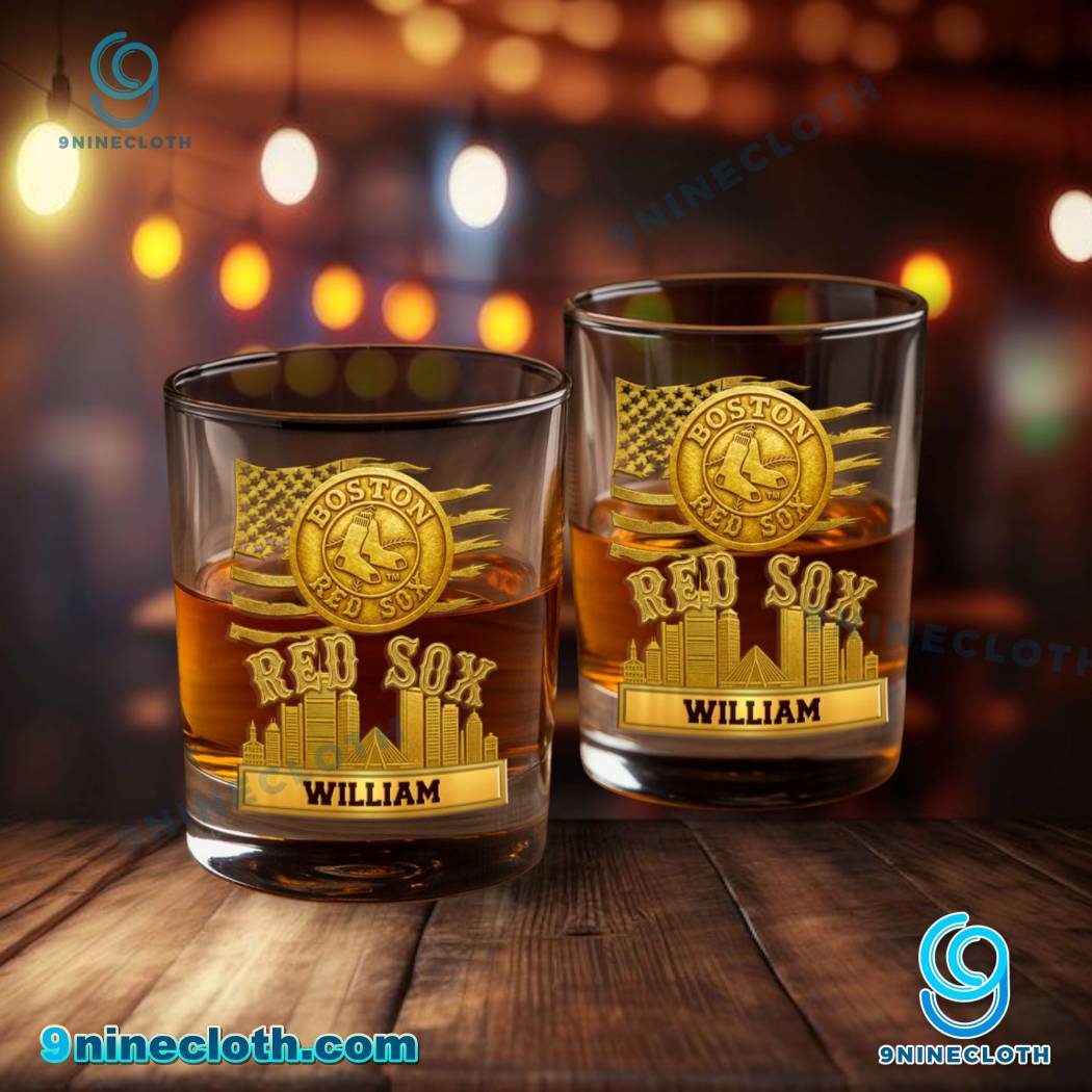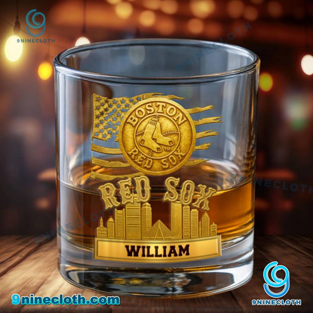 Keywords: Boston Red Sox, Red Sox, whiskey glass, personalized gift, American flag, Boston skyline, sports memorabilia, baseball gift, fan gift, 9ninecloth, home bar, barware.