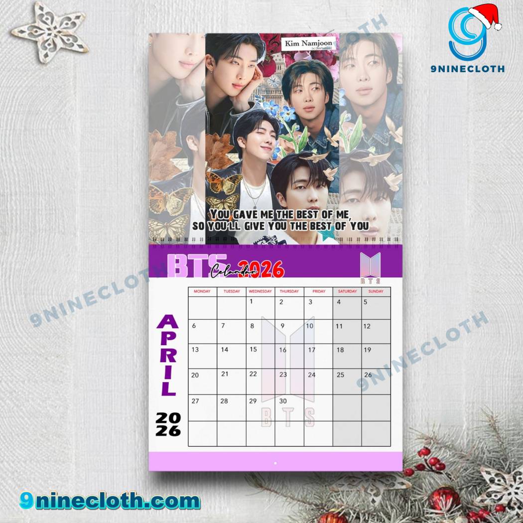 Keywords: BTS, BTS calendar, We Purple You, K-pop, 2026 calendar, wall calendar, BTS merch, ARMY, planner, organization, 9ninecloth.