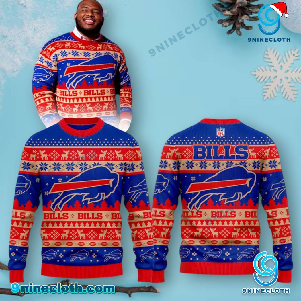 Showcase your team spirit with this eye-catching sweater, featuring a vibrant design that combines the iconic Buffalo Bills logo with classic Christmas elements. It’s the perfect way to celebrate the holidays and support your favorite team in style. Available exclusively at 9ninecloth, where quality and fan dedication meet competitive pricing.