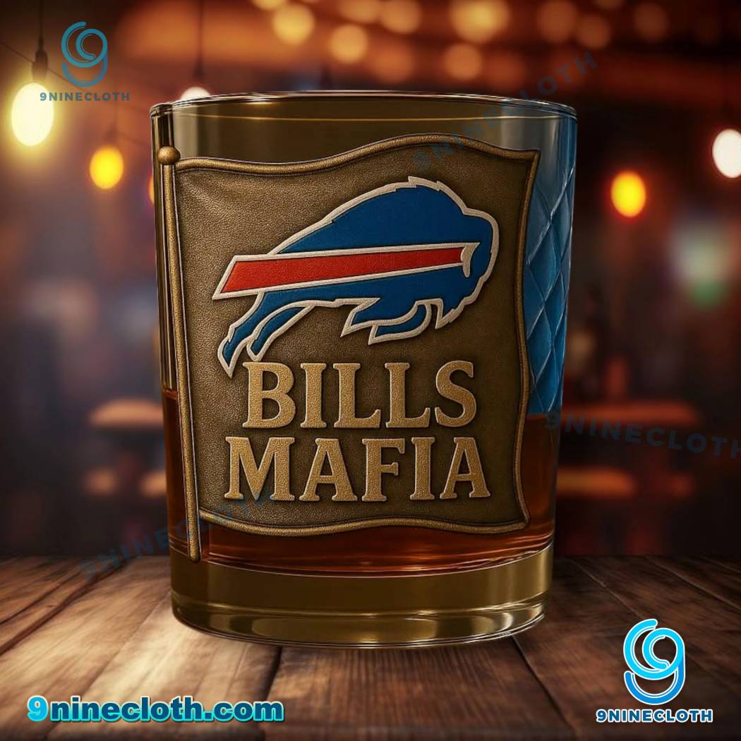 Keywords: Buffalo Bills, Bills Mafia, Whiskey Glass, Football, NFL, Buffalo, Mafia, Gift, Fan Gear, Barware, Home Bar, 9ninecloth, Sports Fan, Trending Design