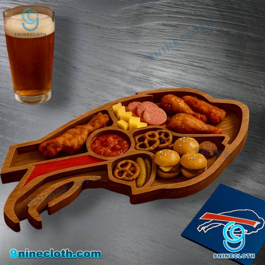 Keywords: Buffalo Bills, Charcuterie Board, Wooden Serving Board, Football, NFL, Game Day, Snacks, Appetizers, Cheese Board, Bills Mafia, Home Decor, Kitchenware, Buffalo Bills Gifts, Sports Fan, 9ninecloth, Tailgating, Barware