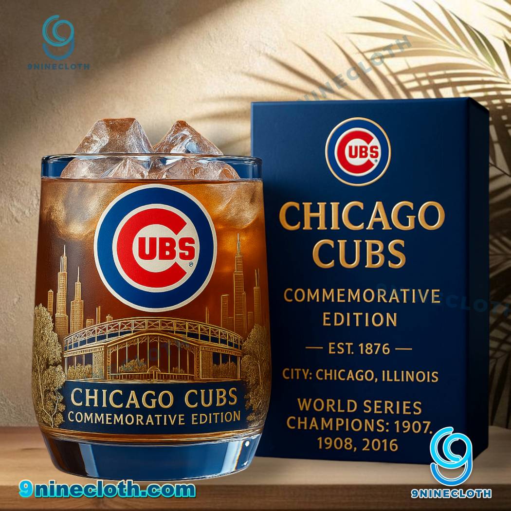 Keywords: Chicago Cubs, Whiskey Glass, Bourbon Glass, Sports Memorabilia, Baseball, Cubs Fan Gift, Drinkware, Barware, Home Bar, Commemorative Edition, 9ninecloth, High-Quality Glass, MLB, Chicago Baseball