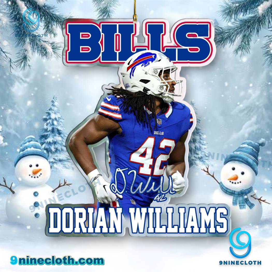 Keywords: Dorian Williams, Buffalo Bills, Christmas Ornament, NFL, Football, Holiday Decoration, Team Spirit, Gift Ideas, Sports Memorabilia, 9ninecloth, Mica Ornament, UV Printing, Personalized Ornament