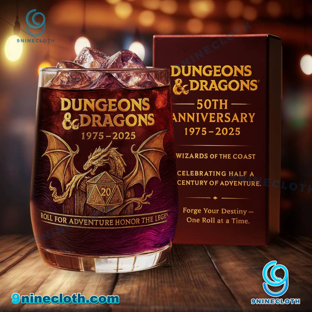 Dungeons & Dragons 1975-2025 Roll For Adventure Honor The Legend Whiskey Glass