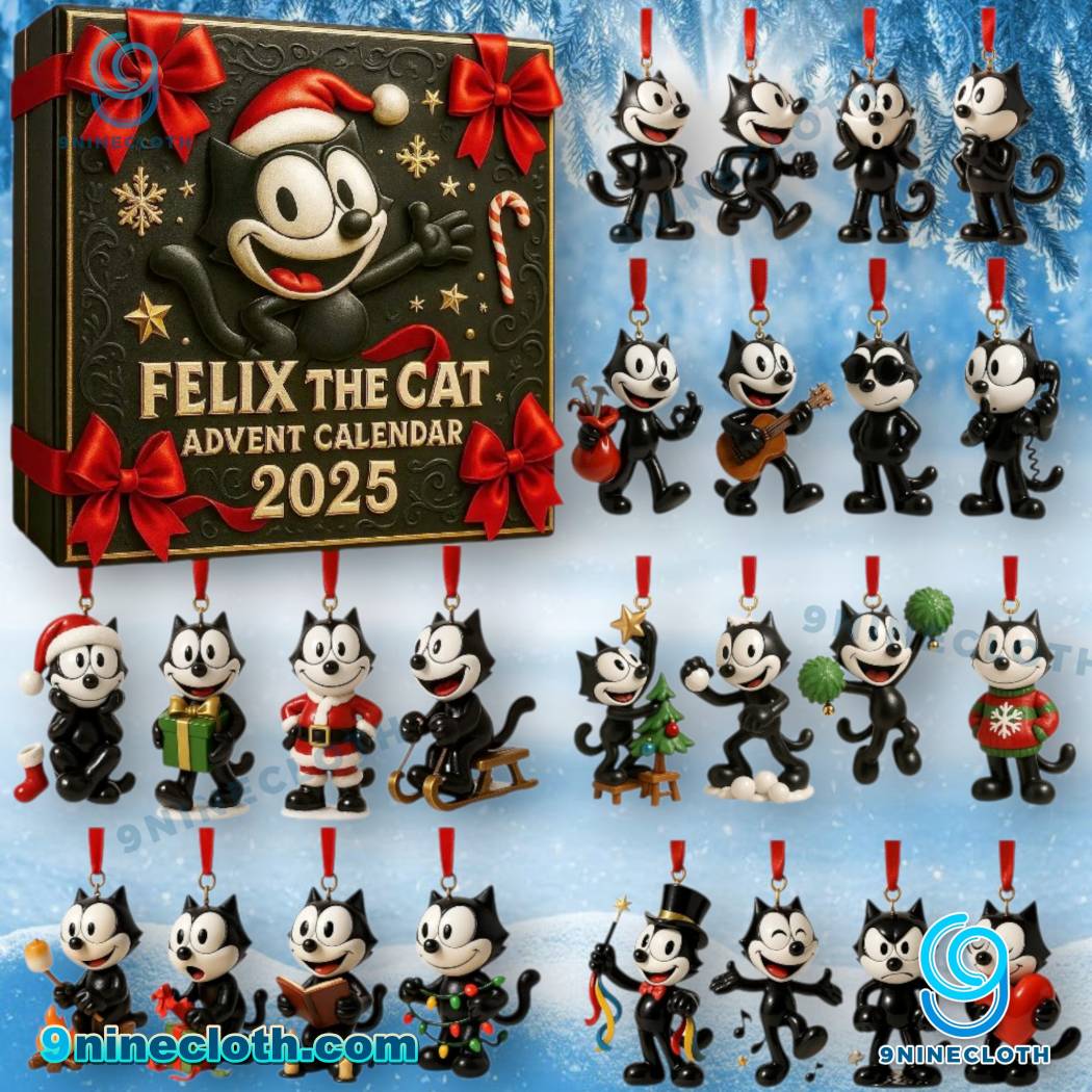 Keywords: Felix The Cat, advent calendar, Christmas decorations, handmade ornaments, 2025 calendar, holiday gift, vintage cartoon, cartoon character, cat lover gift, 9ninecloth.