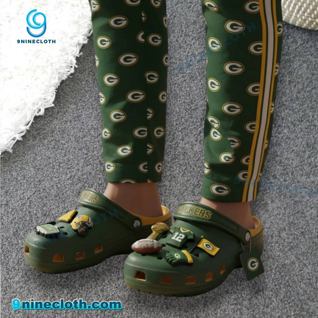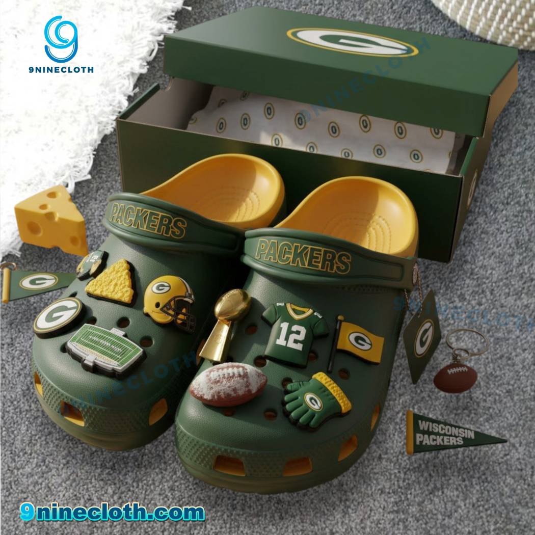 Keywords: Green Bay Packers, Packers Crocs, NFL Crocs, football Crocs, Green Bay Packers shoes, Crocs with charms, Packers merchandise, fan gear, 9ninecloth, Green Bay Packers gifts.