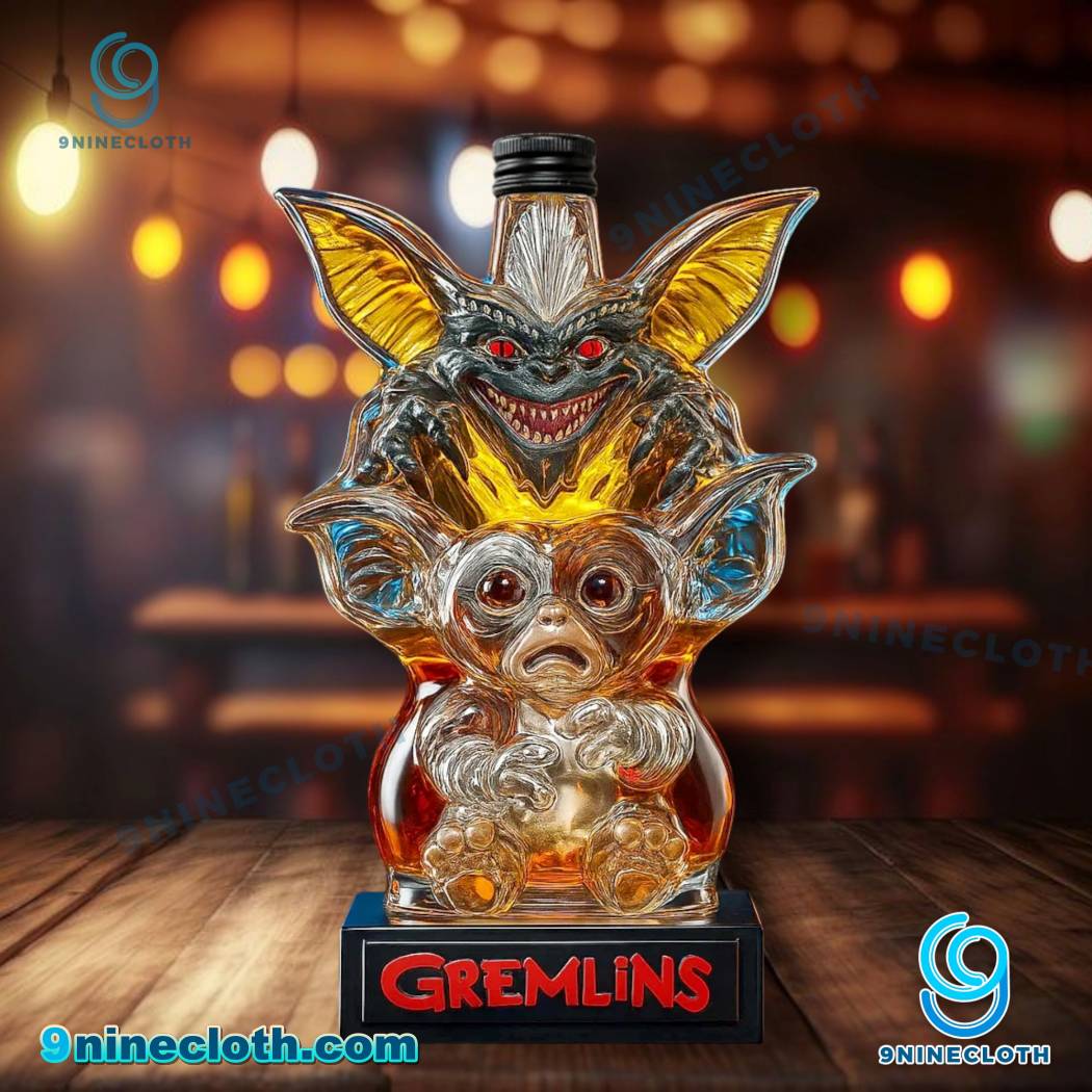 Keywords: Gremlins, Whiskey Bottle, Glass Bottle, Custom Shape, Barware, Collectible, Movie Memorabilia, Gizmo, Mogwai, 9ninecloth, Home Bar, Unique Gifts, Drinkware, Red Wine, Cocktails