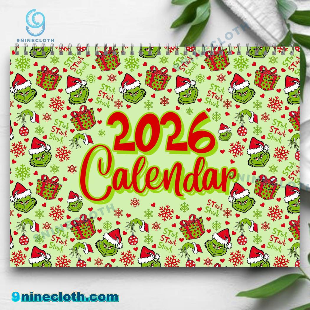 Keywords: Grinch, 2026 Calendar, Wall Calendar, Dr. Seuss, Holiday Calendar, Christmas, Organization, Planning, Monthly Calendar, Premium Paper, Twin-Wire Binding, 9ninecloth, Gift Idea, Home Decor, Office Supplies