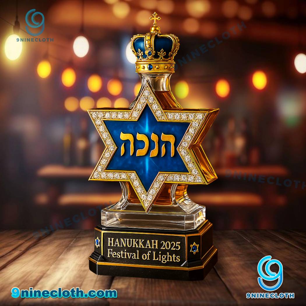 Keywords: Hanukkah, Festival of Lights, Whiskey Bottle, Glass Bottle, Custom Shape, Red Wine, Cocktail, Holiday Gift, 2025, Celebrations, Unique Design, 9ninecloth, Barware, Drinkware, Holiday Decor, Whiskey Lover, Wine Lover.