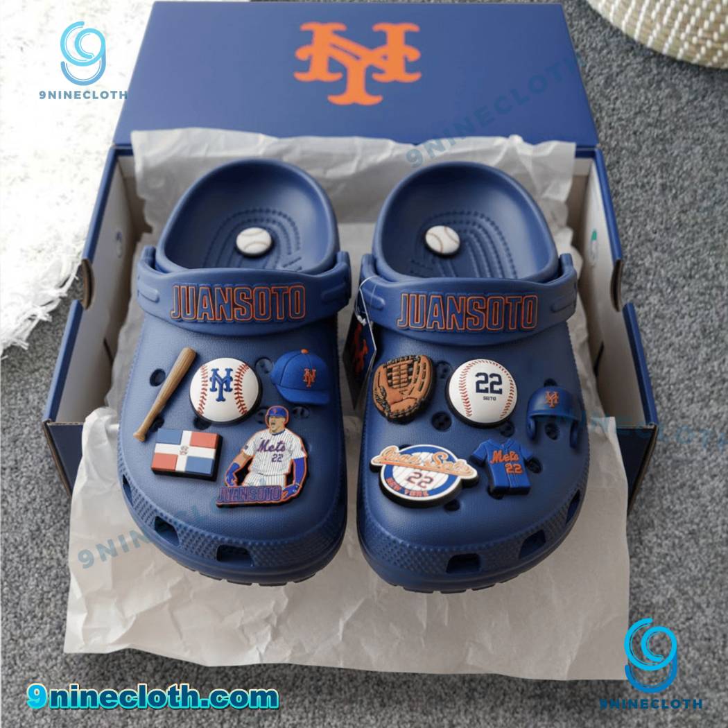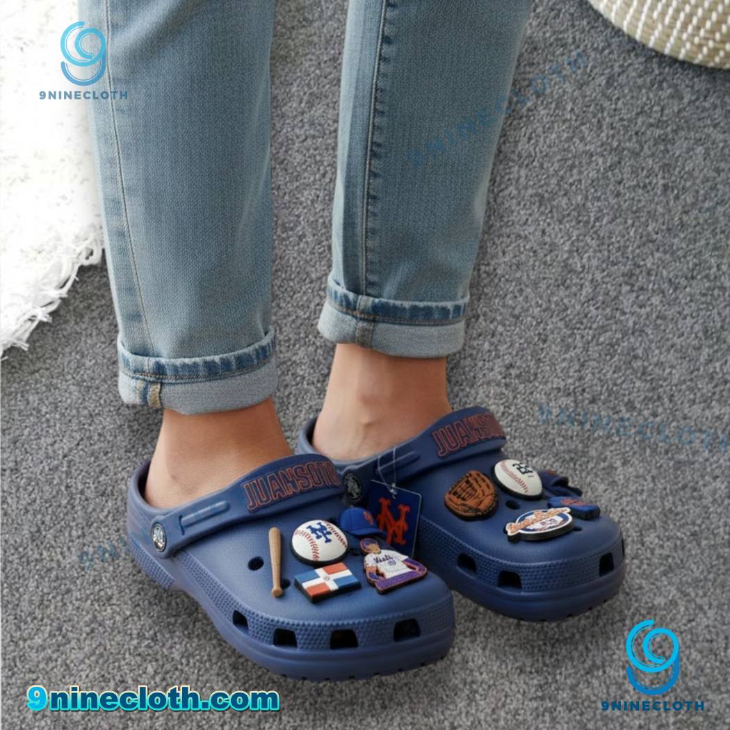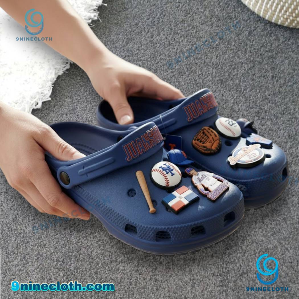 Keywords: Juan Soto, New York Mets, Crocs, Crocs with charms, MLB, baseball, fan gear, sports apparel, Mets Crocs, custom Crocs, 9ninecloth.