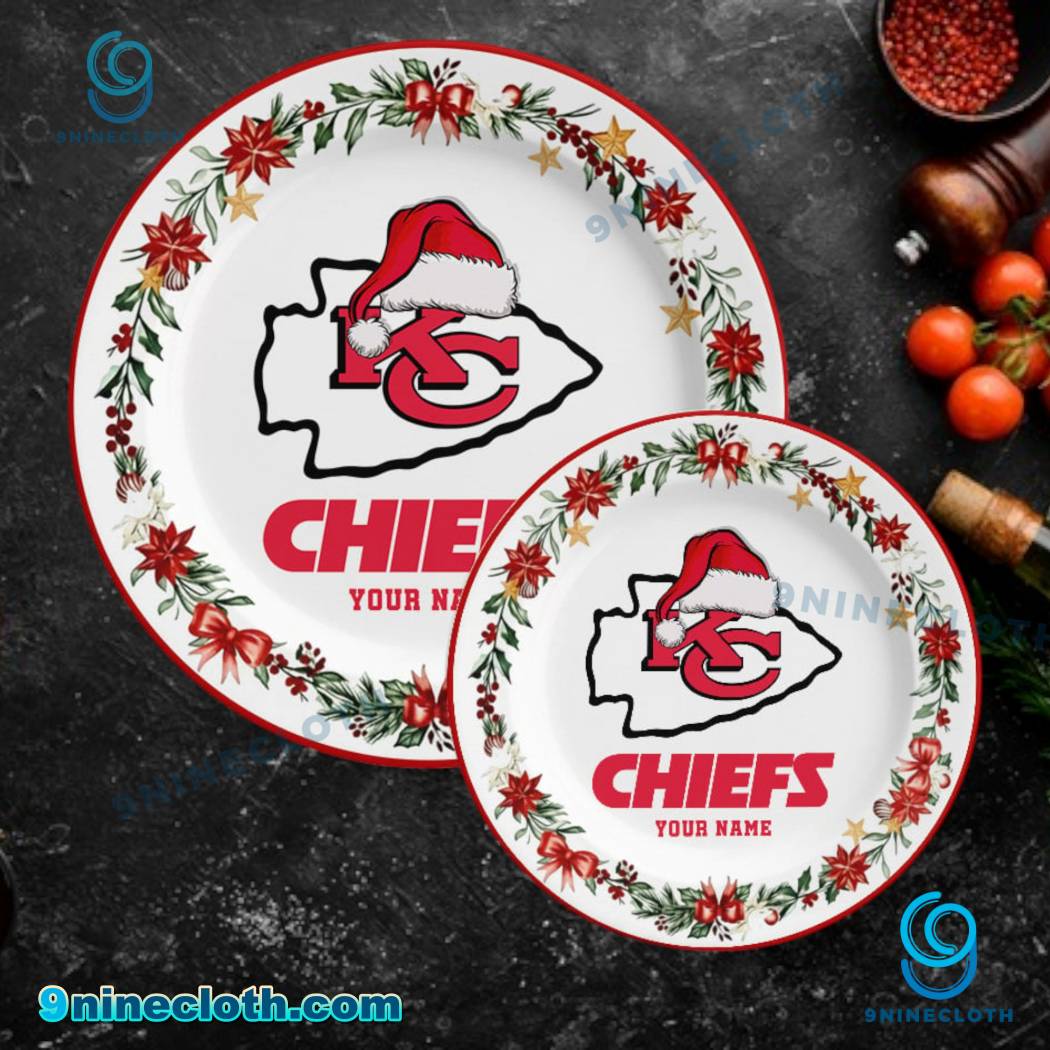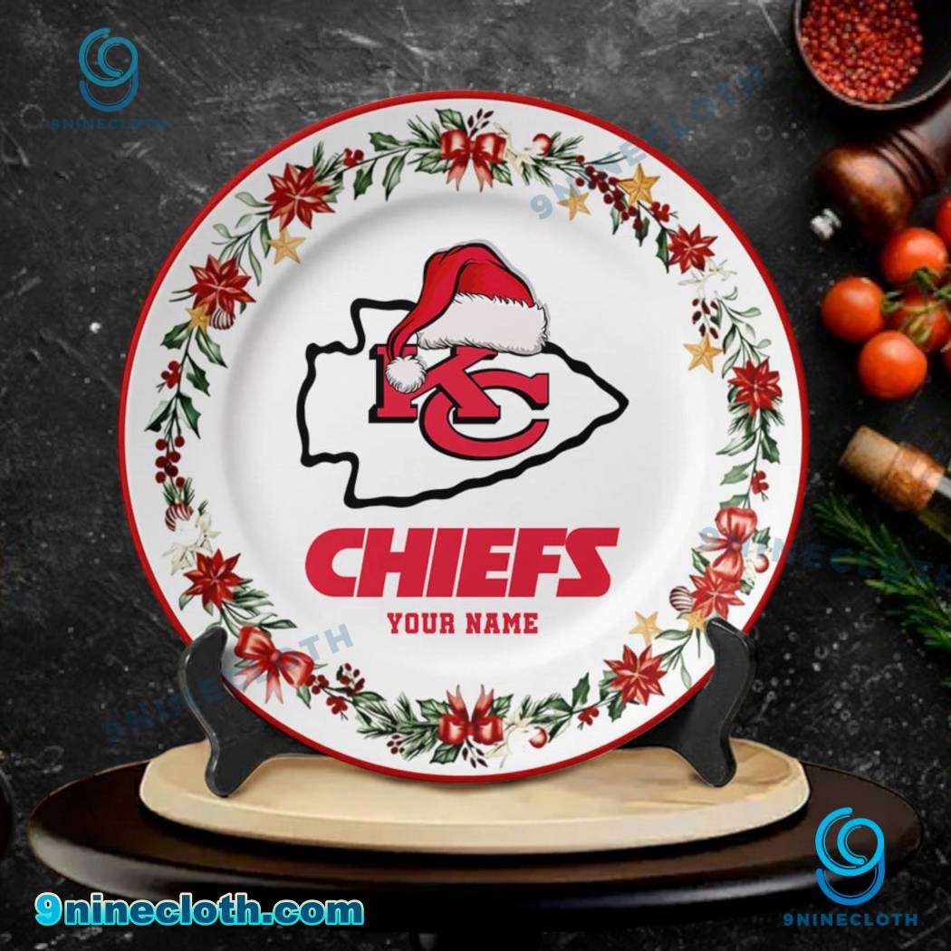 Celebrate the Holidays with Your Kansas City Chiefs Pride: Personalized Ceramic Plate!
