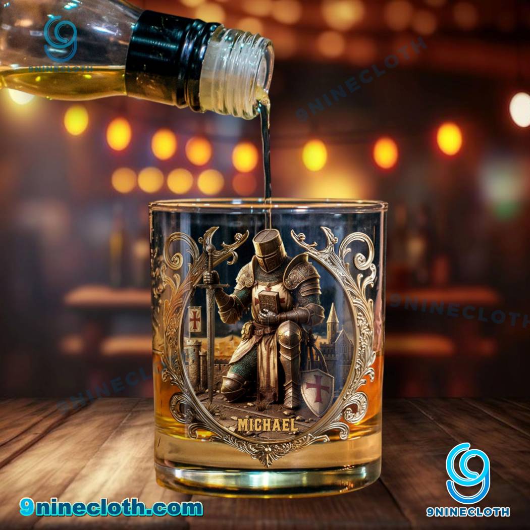 Kneeling Crusader Knight With Sword And Bible Personalized Whiskey Glass