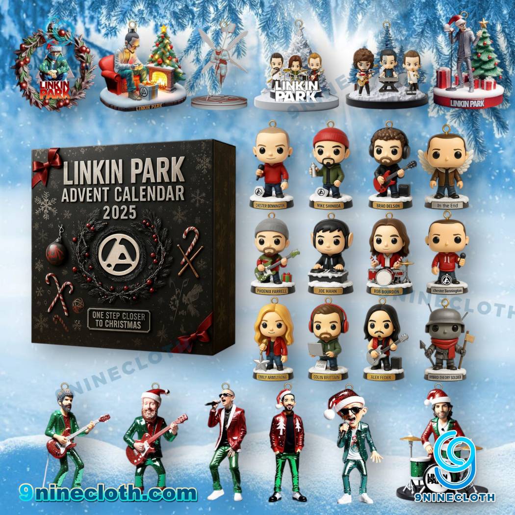 Keywords: Linkin Park, advent calendar, Christmas, holiday decoration, Linkin Park merchandise, band merch, handmade, ornaments, One Step Closer, 2025, gift for fans, 9ninecloth.