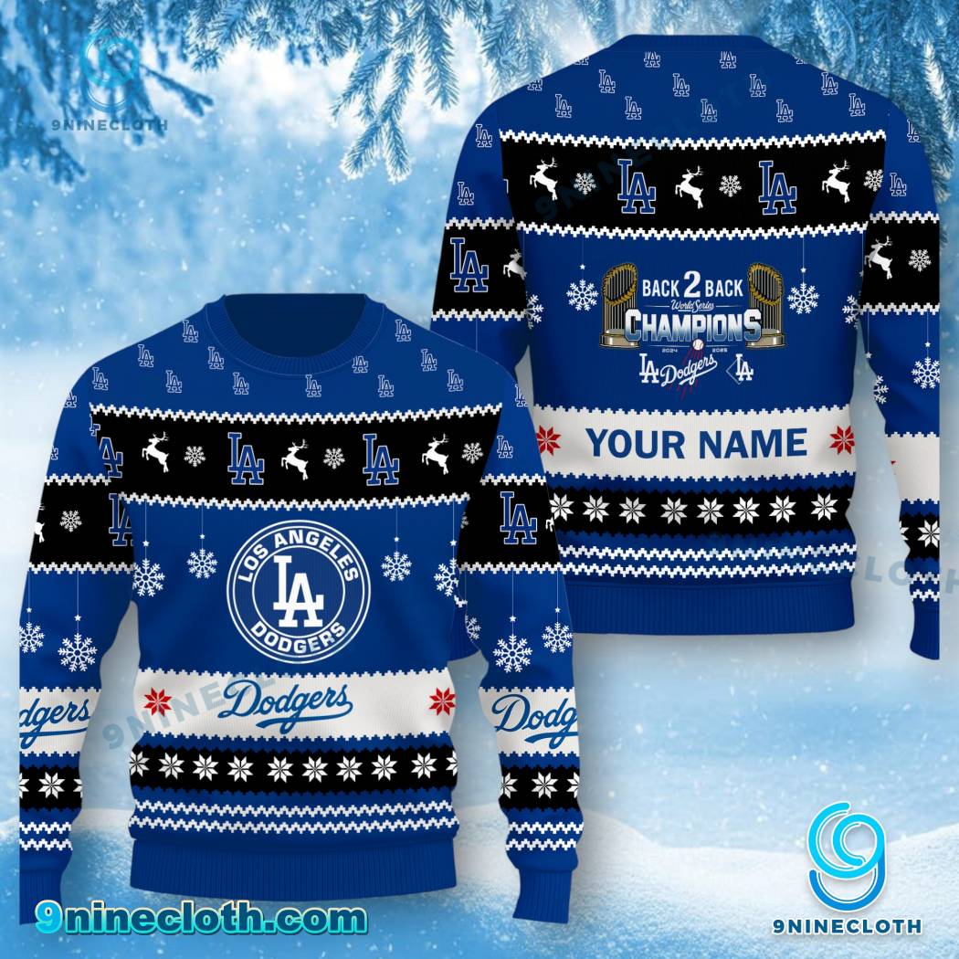 Los Angeles Dodgers Back 2 Back World Series Champions Ugly Christmas Sweater