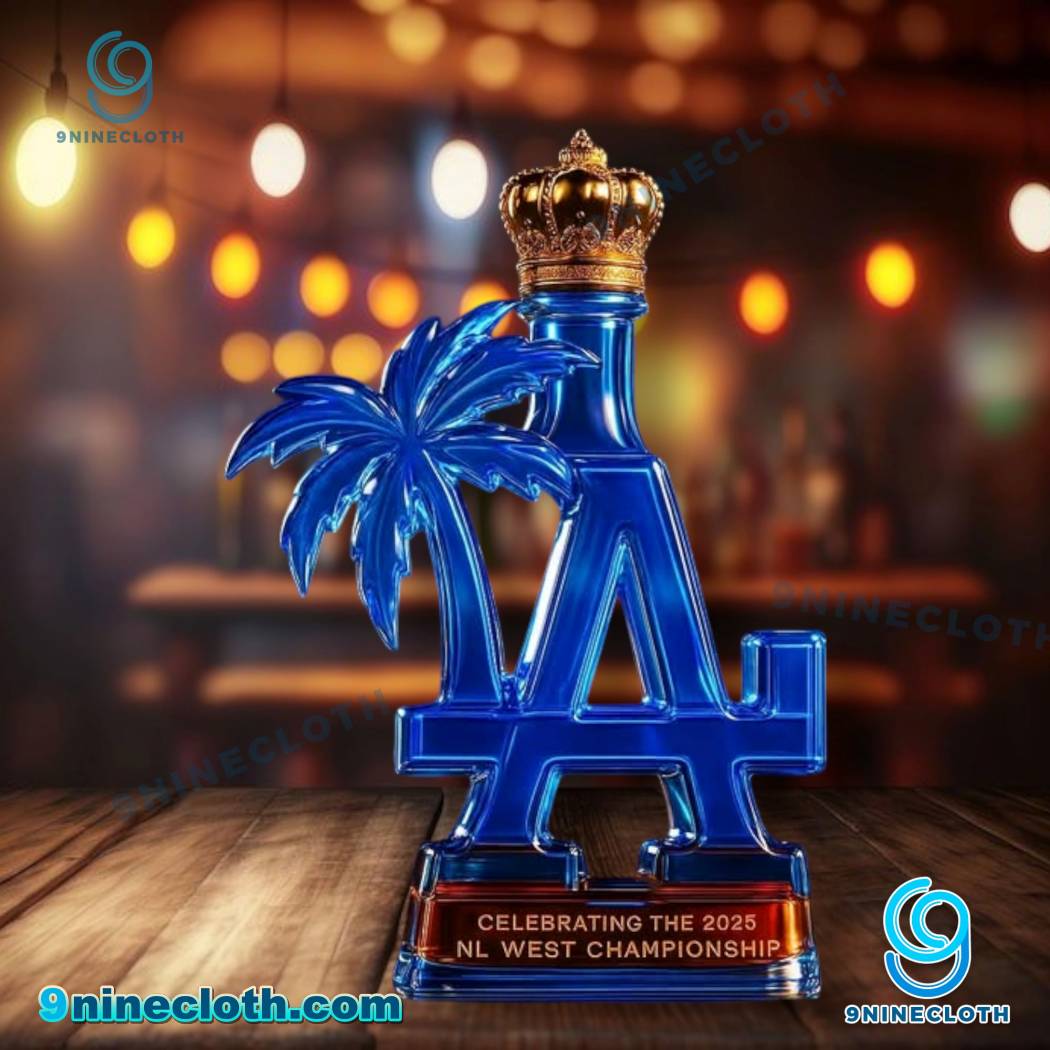 Keywords: Los Angeles Dodgers, Dodgers, NL West Championship, 2025, Whiskey Bottle, Glass Bottle, Baseball, MLB, Championship, Collectible, Memorabilia, Sports, Gift, 9ninecloth, Custom Shape