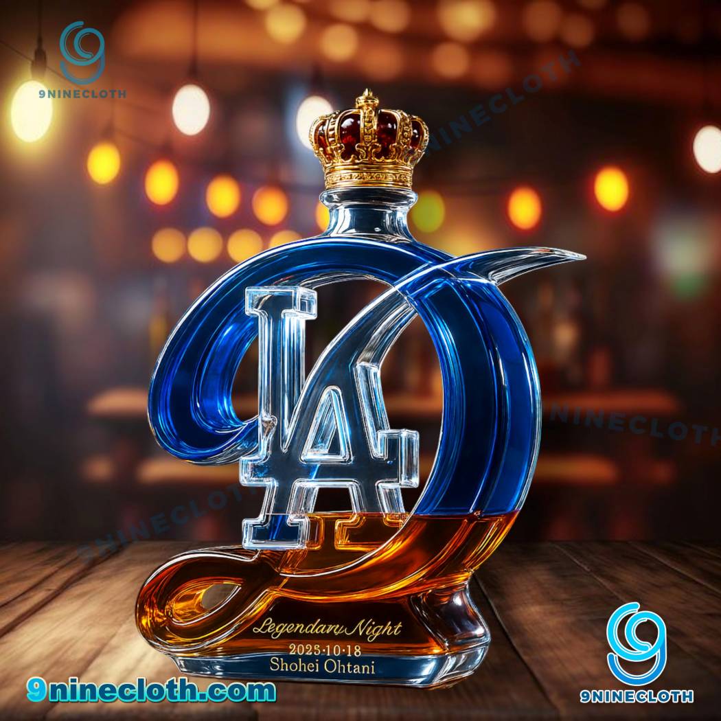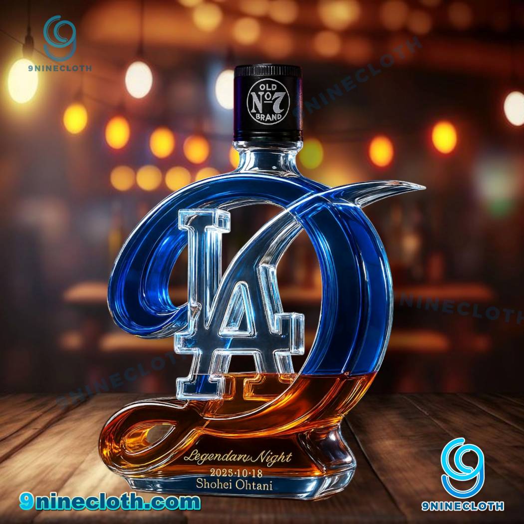 Keywords: Los Angeles Dodgers, Shohei Ohtani, Whiskey Bottle, Baseball, MLB, Dodgers Fan, Collectible, Sports Memorabilia, Custom Bottle, 9ninecloth, Legendary Night, 2025-10-18, Glass Bottle