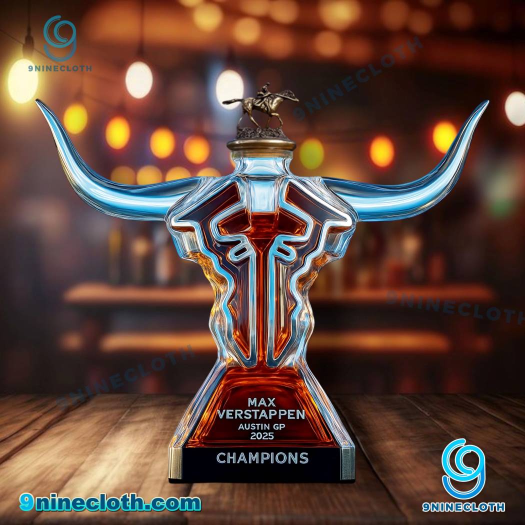 Keywords: Max Verstappen, Austin GP 2025, Formula 1, Champions, Whiskey Bottle, Custom Bottle, Racing Memorabilia, Collectible, Gift for F1 Fan, Glass Bottle, Home Bar, 9ninecloth, Verstappen Fan, F1 Racing, Grand Prix, Racing Champions