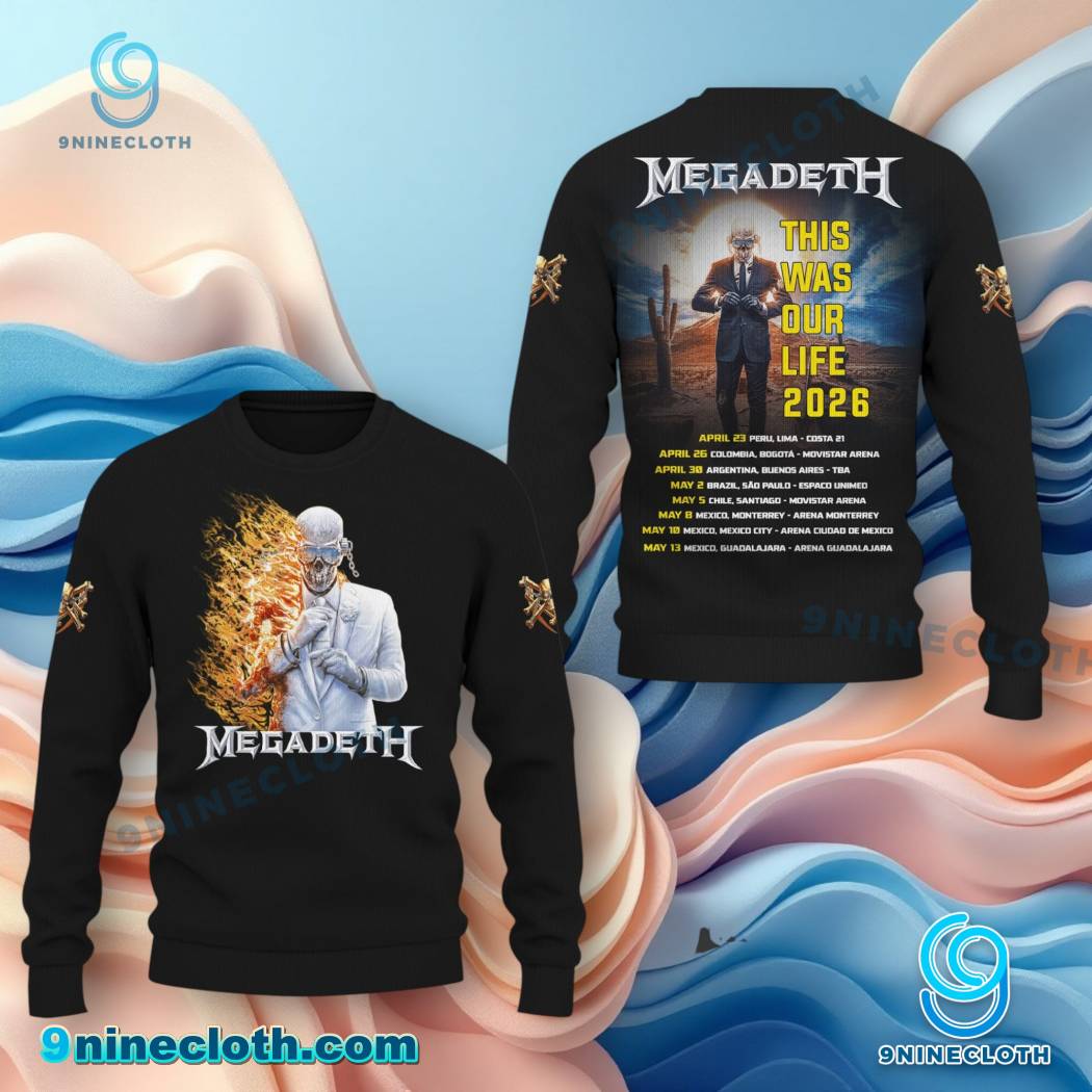 Keywords: Megadeth, This Was Our Life Tour 2026, T-Shirt, Hoodie, Metal, Thrash Metal, Band Merchandise, Music Apparel, Concert Shirt, Megadeth Fan, Rock Music, Heavy Metal, 9ninecloth, Band Tee, Graphic Tee