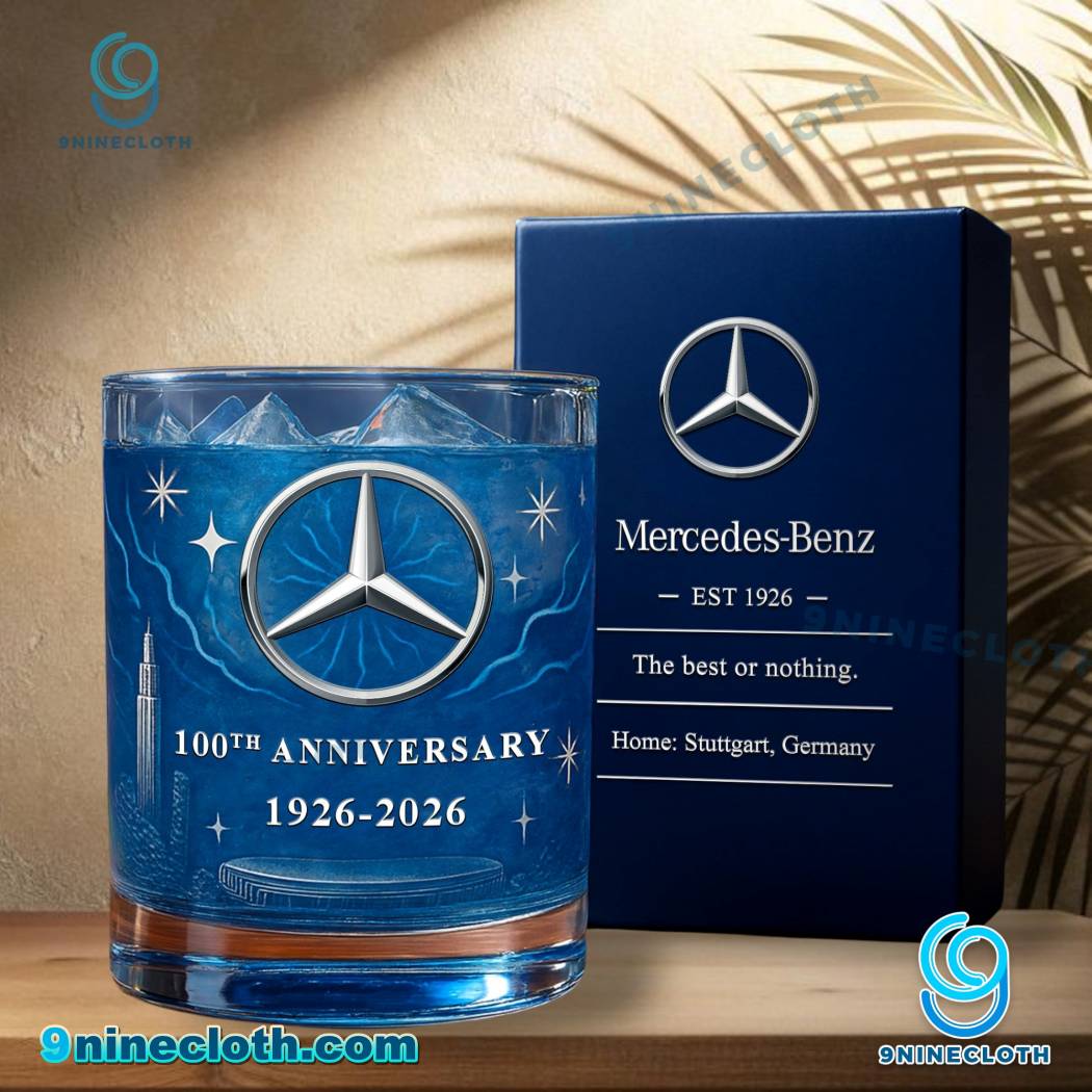 Keywords: Mercedes-Benz, Mercedes, Whiskey Glass, 100th Anniversary, 1926-2026, Automotive, Car, Gift, Bourbon Glass, Drinkware, Barware, Collectible, Mercedes Benz anniversary, car enthusiast gift.