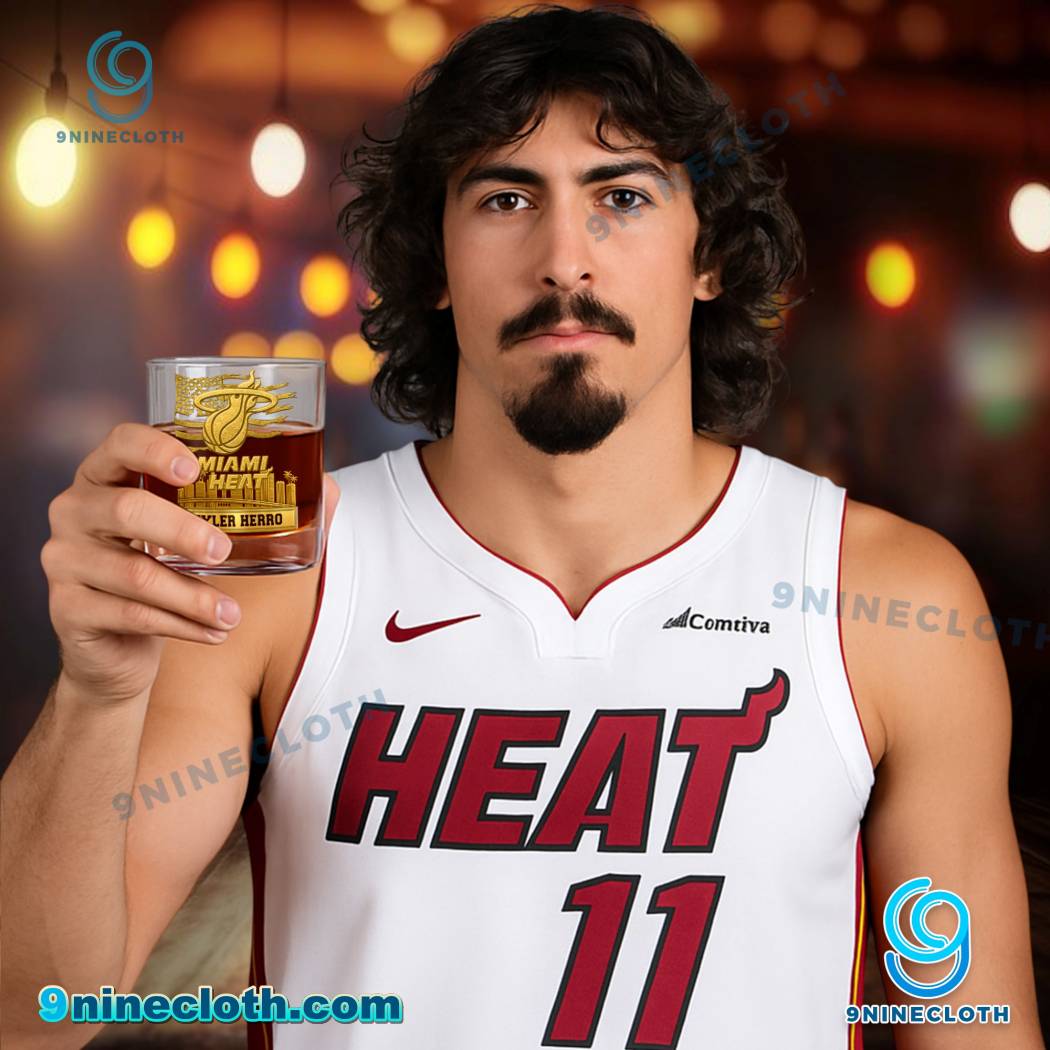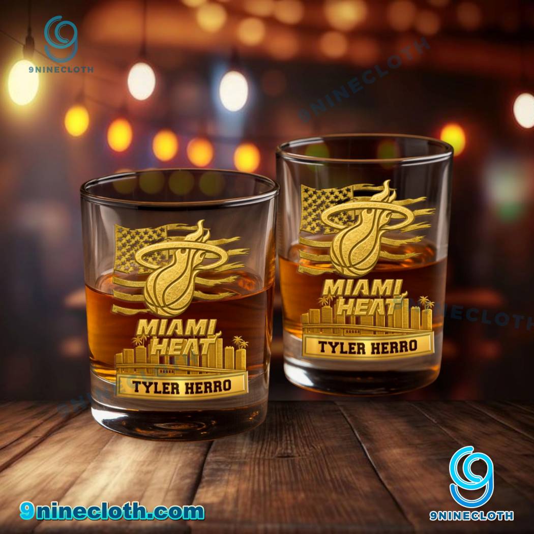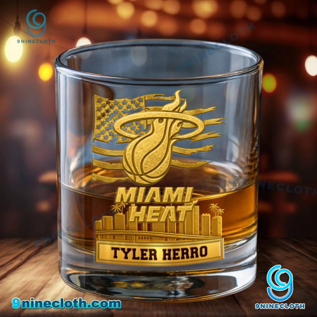 Keywords: Miami Heat, Whiskey Glass, American Flag, City Skyline, Personalized Gift, NBA, Basketball, Miami, Drinkware, Bourbon, Glassware, 9ninecloth, Gift Ideas, Sports Fan, Home Bar, Barware, Souvenir
