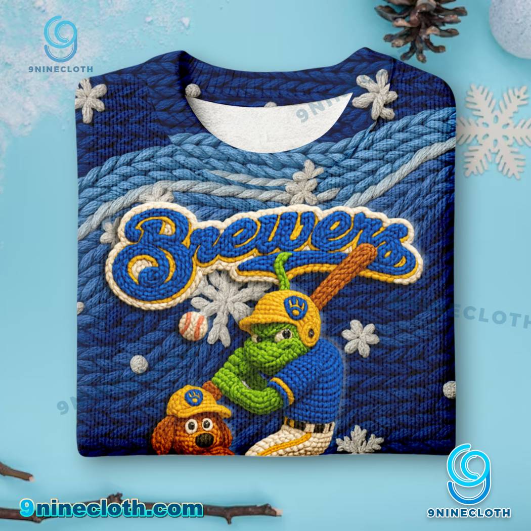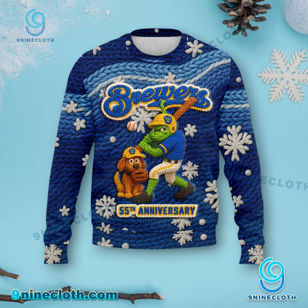 Keywords: Milwaukee Brewers, Christmas Sweater, 55th Anniversary, MLB, Baseball, Holiday Sweater, Fan Apparel, Team Spirit, Winter Wear, Festive Sweater, 9ninecloth, Brewers Fan Gift, Baseball Christmas, Unique Christmas Sweater