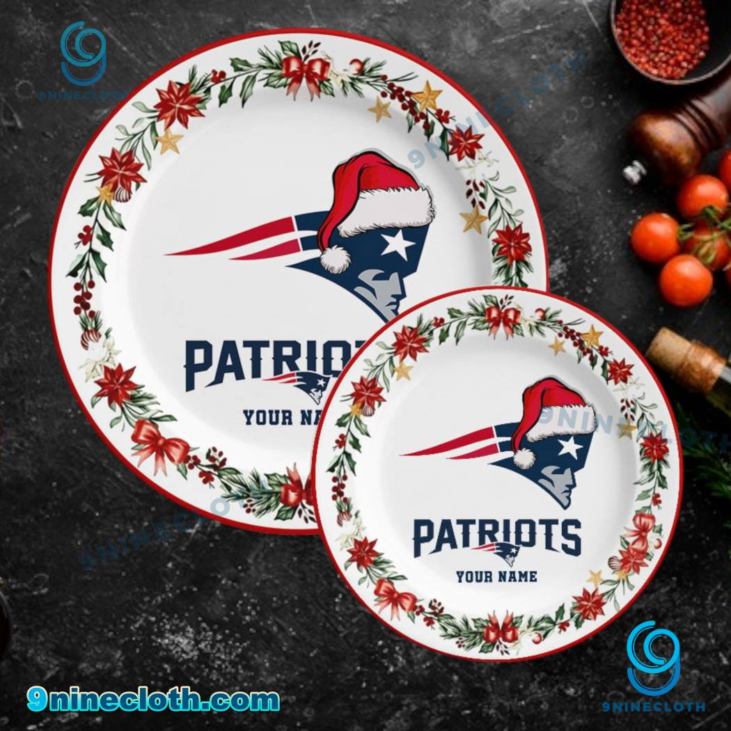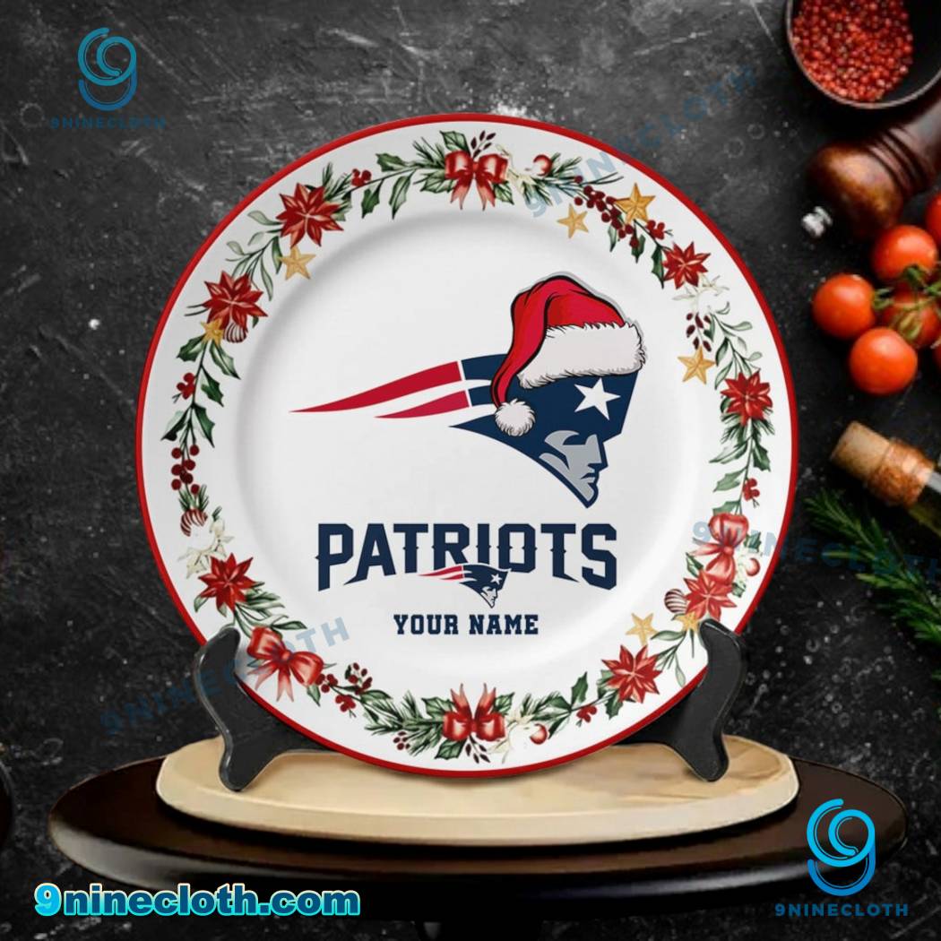 Keywords: New England Patriots, Christmas, Personalized, Ceramic Plate, Football, NFL, Holiday Gift, Team Spirit, Home Decor, 9ninecloth, Custom Gift, Patriots Fan, Gift for Him, Gift for Her, Football Season, Holiday Decoration