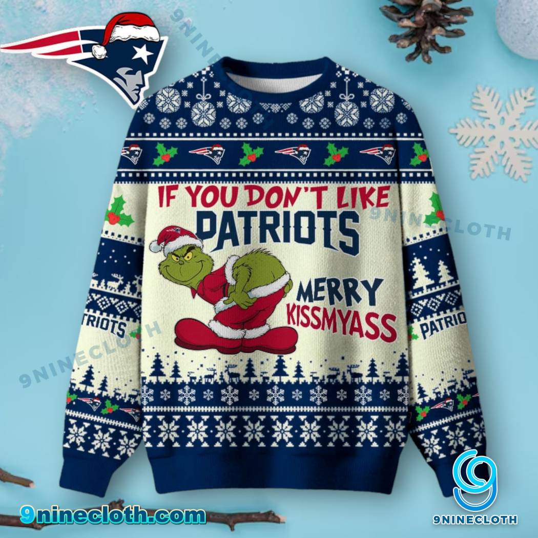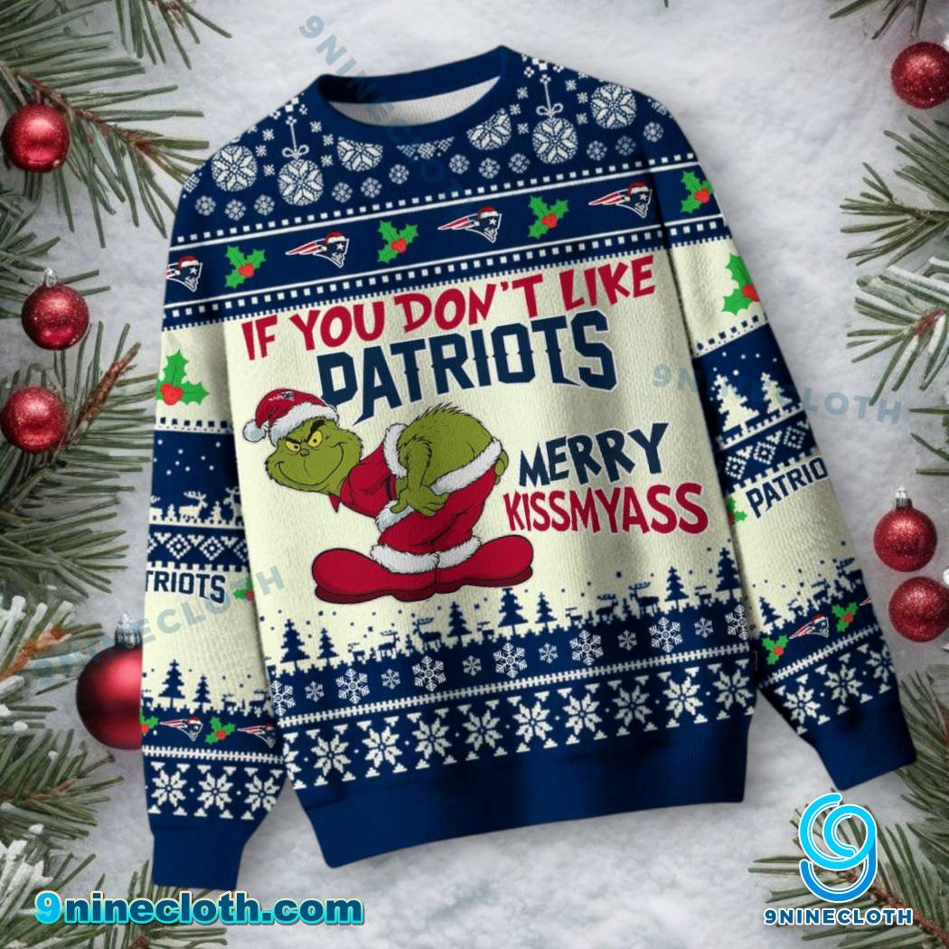 New England Patriots Grinch Merry Kissmyass Ugly Christmas Sweater-a GXmurR0
