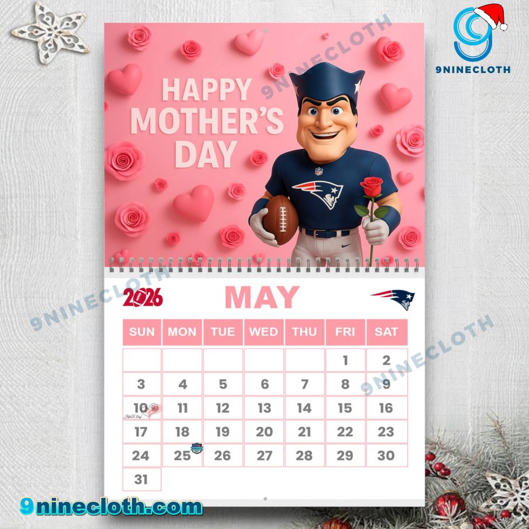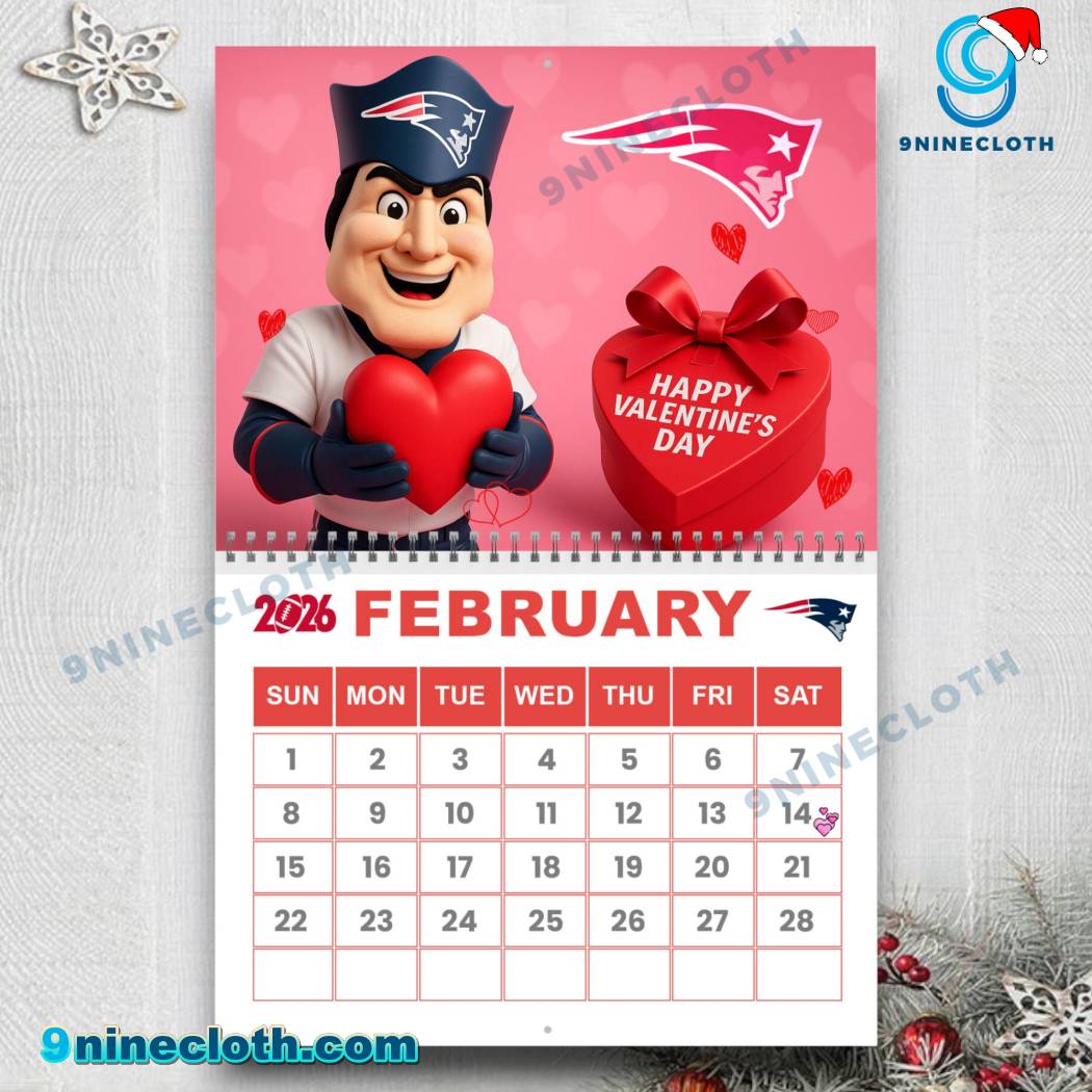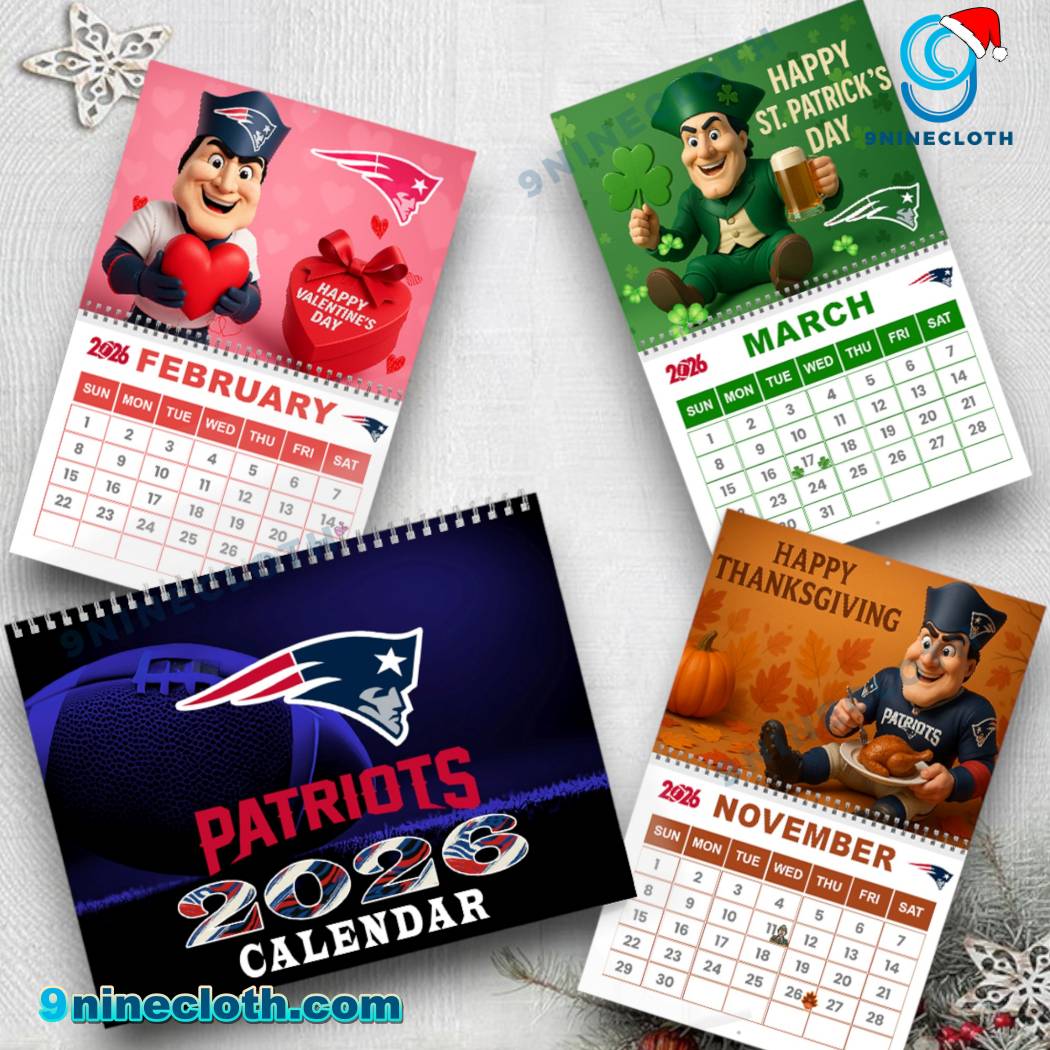 Keywords: New England Patriots, Patriots, Wall Calendar, 2026 Calendar, NFL, Football, Team Calendar, Sports Calendar, Gift, Football Fan, 9ninecloth, New England Patriots Merchandise