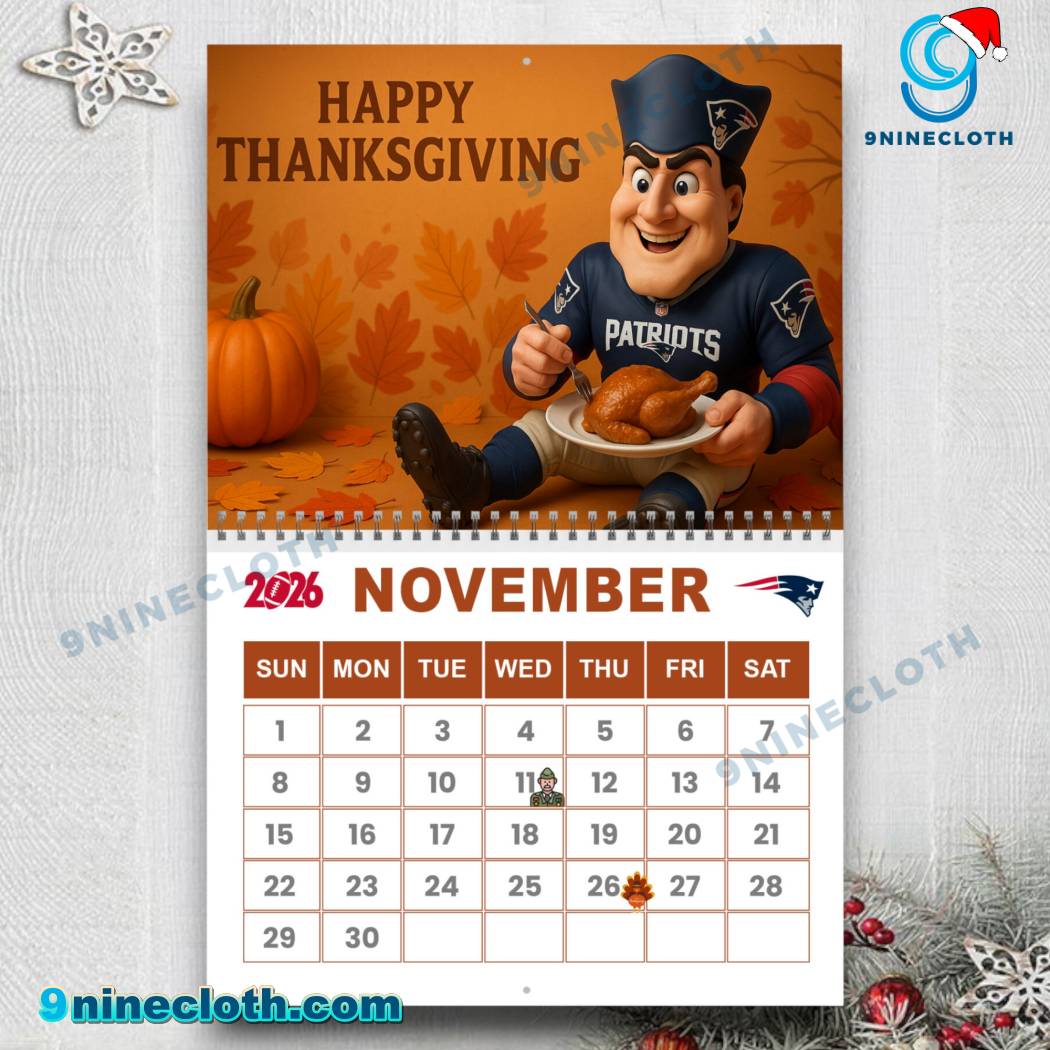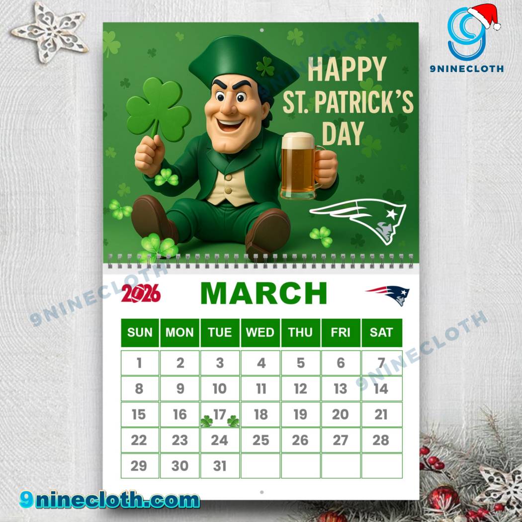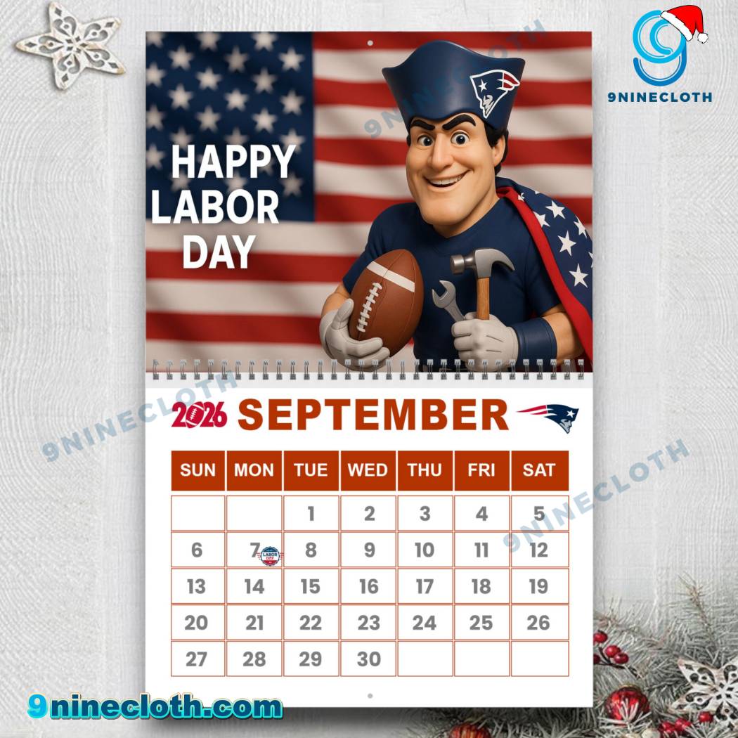 Keywords: New England Patriots, Patriots, Wall Calendar, 2026 Calendar, NFL, Football, Team Calendar, Sports Calendar, Gift, Football Fan, 9ninecloth, New England Patriots Merchandise