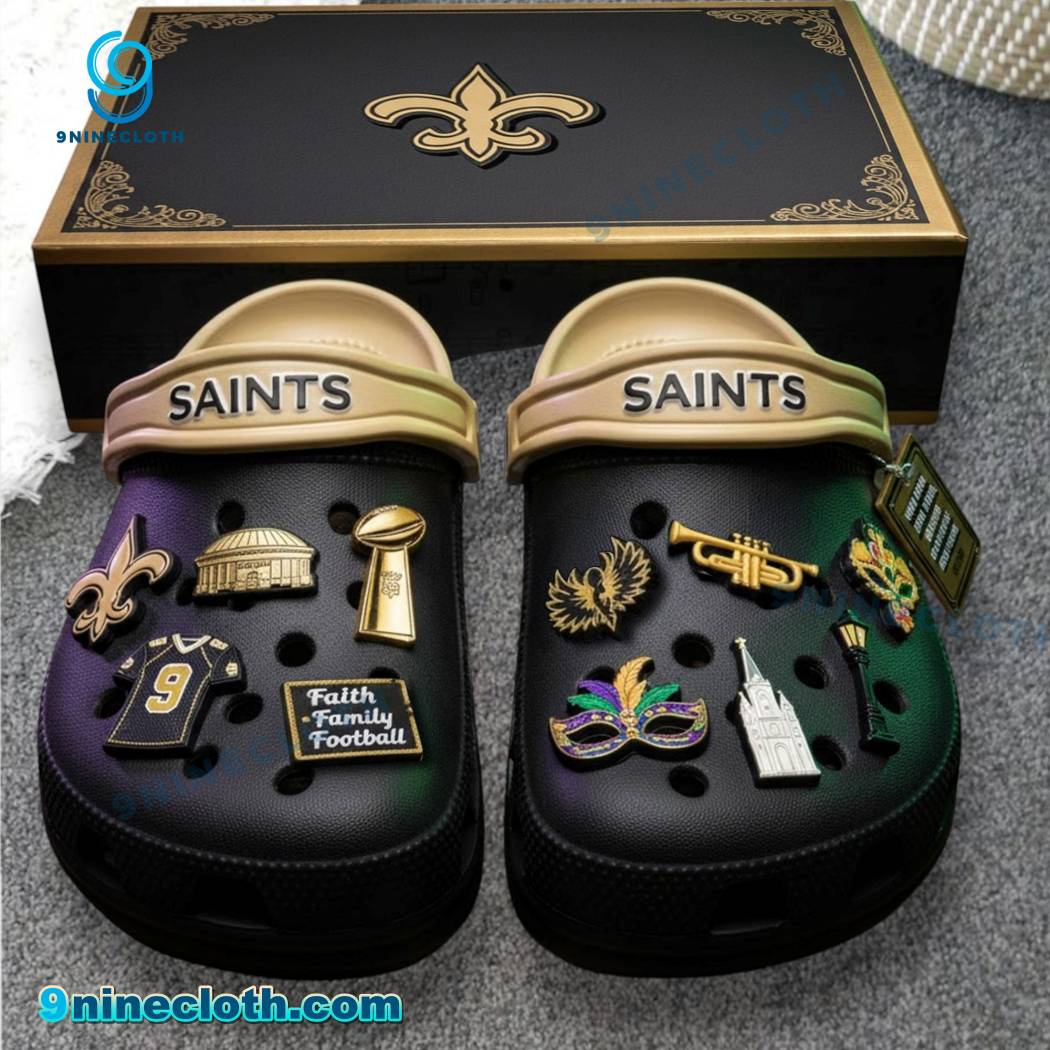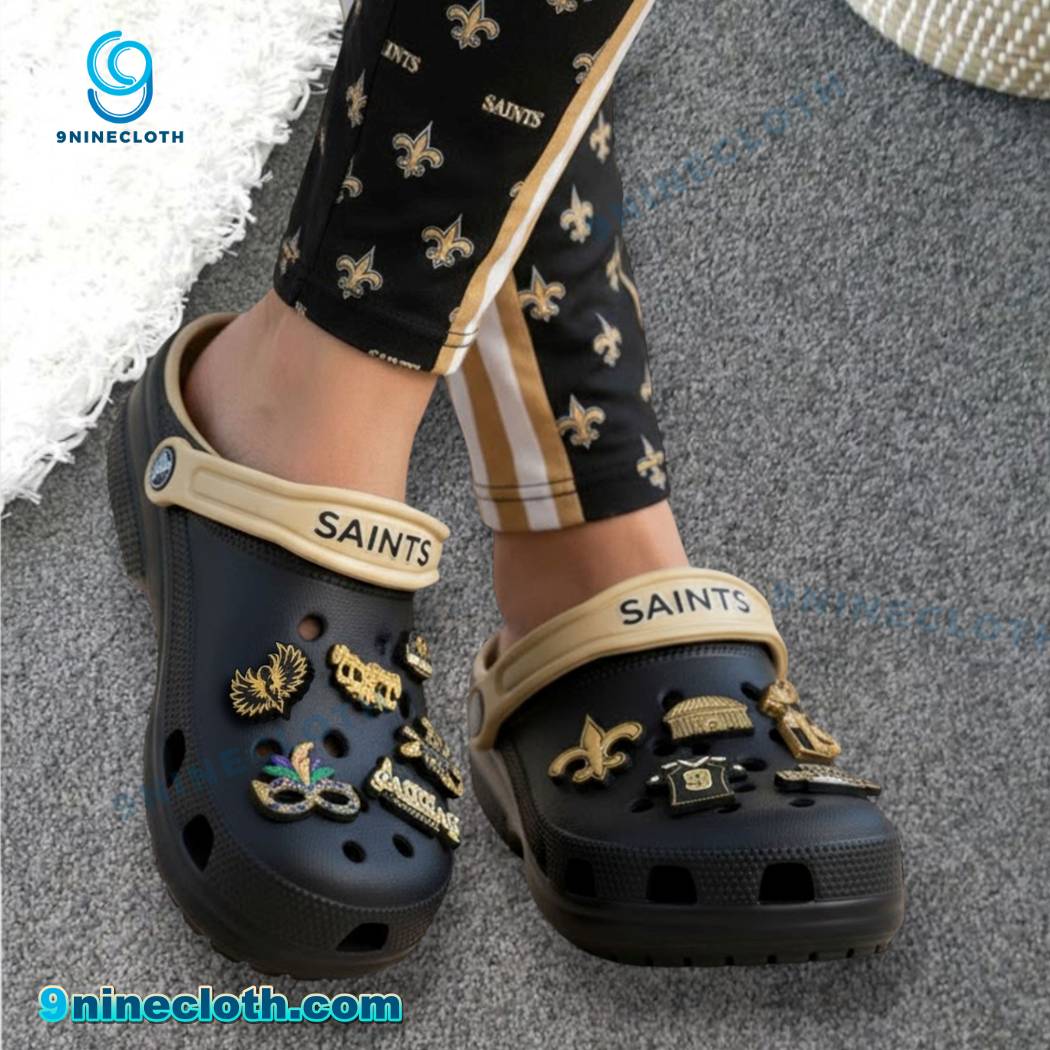 Keywords: New Orleans Saints, Saints Crocs, NFL Crocs, football Crocs, team Crocs, custom Crocs, Crocs with charms, EVA Crocs, 9ninecloth, Saints fan gear, New Orleans sports, Who Dat, Saints merchandise.