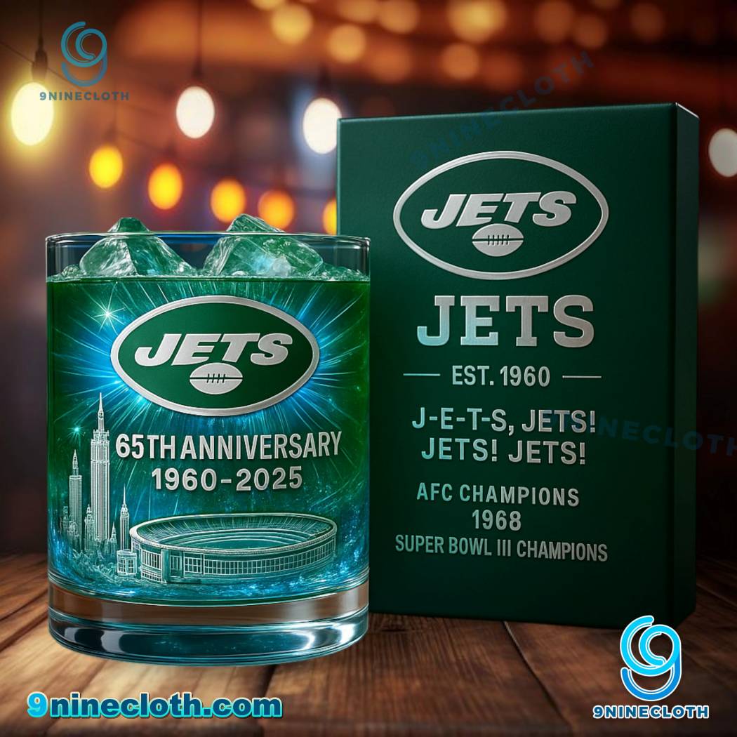 Keywords: New York Jets, Jets whiskey glass, NFL gifts, football fan gifts, Jets anniversary, 65th anniversary, sports memorabilia, collectible glass, Jets merchandise.