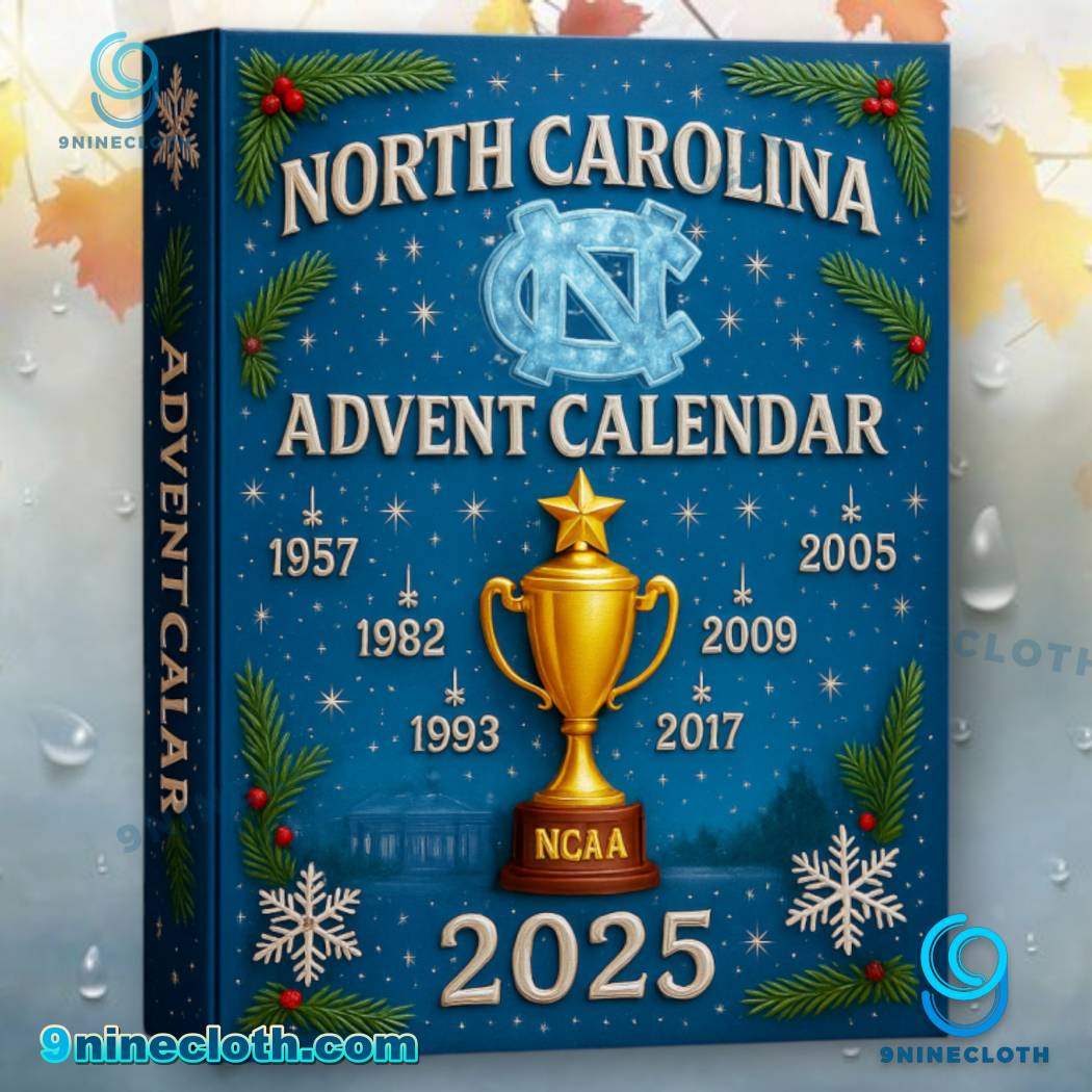 Keywords: North Carolina Tar Heels, Advent Calendar, Christmas, Holiday, Ornaments, Handmade, NCAA, College Sports, Tar Heels, 2025, Christmas Decorations, 9ninecloth, Fan Gear, Unique Gift, Holiday Decor