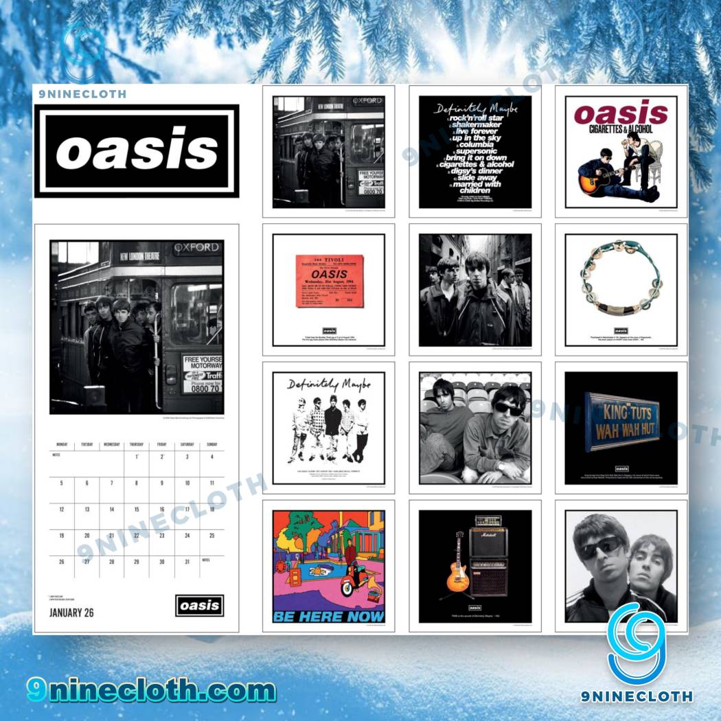 Keywords: Oasis, Wall Calendar, 2026, Britpop, Music, Calendar, Noel Gallagher, Liam Gallagher, Rock and Roll, Organization, Planner, 9ninecloth, Gifts for Oasis Fans