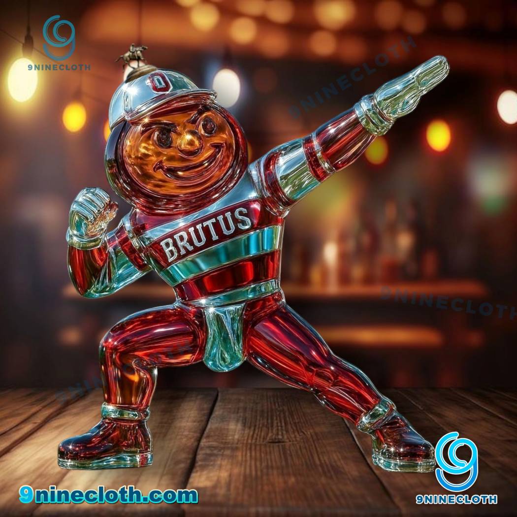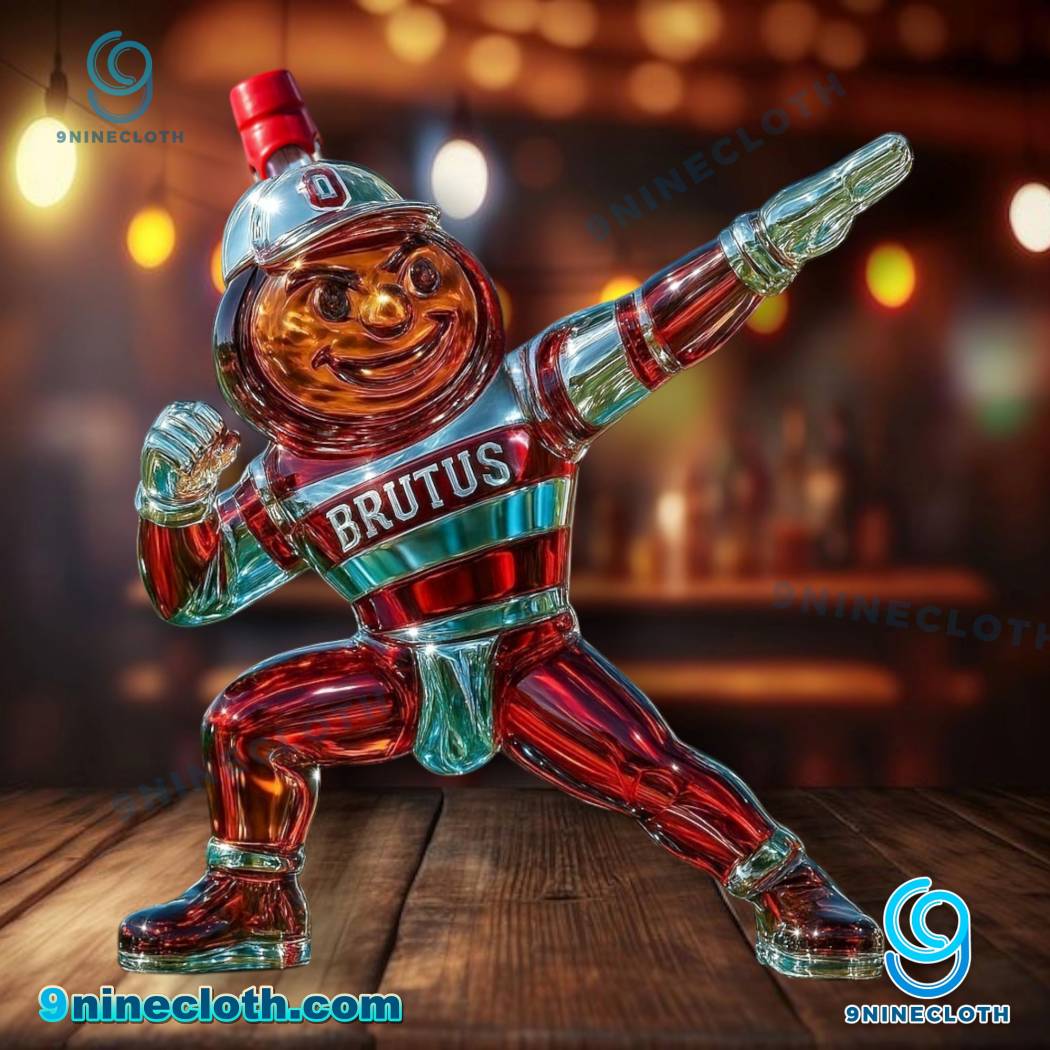 Keywords: Ohio State Buckeyes, Brutus Buckeye, Whiskey Bottle, Custom Bottle, Glass Bottle, College Football, OSU, Ohio State, Buckeye Nation, Sports Memorabilia, Unique Design, 9ninecloth, Game Day, Home Bar, Gift Ideas