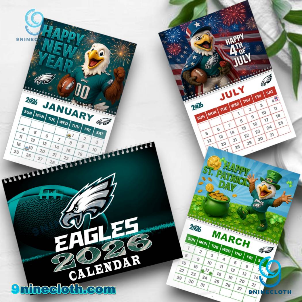 Keywords: Philadelphia Eagles, Eagles, NFL, Football, 2026 Calendar, Wall Calendar, Sports Calendar, Gift, Football Fan, Lincoln Financial Field, 9ninecloth