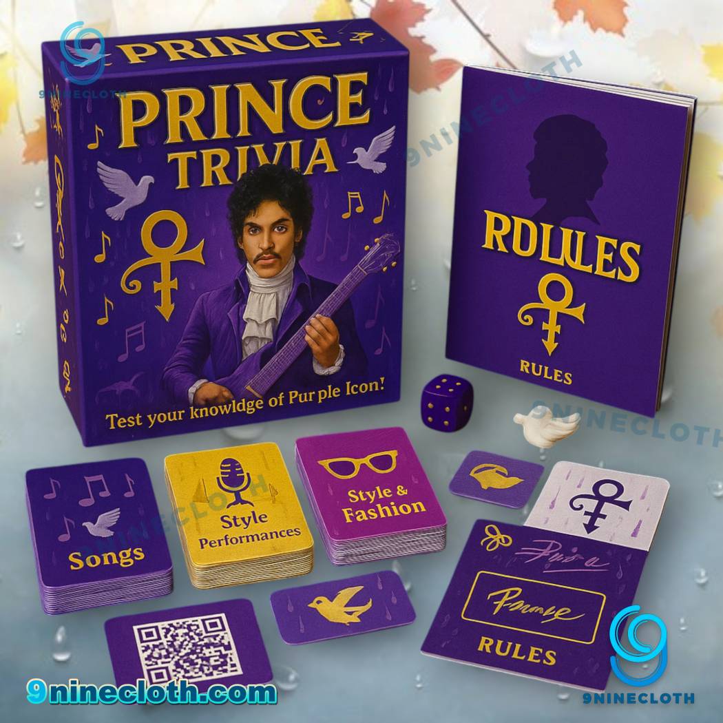 Keywords: Prince, Purple Rain, Trivia Board Game, Pop Icon, Music Trivia, Prince Rogers Nelson, Custom Board Game, Music Game, 80s Music, Pop Music, 9ninecloth, Prince Fan, Prince Memorabilia, Game Night, Board Games, Pop Culture