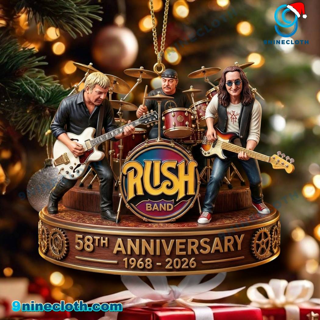 Keywords: Rush, Rush band, Rush ornament, rock band, Geddy Lee, Alex Lifeson, Neil Peart, 58th anniversary, 1968-2026, music memorabilia, band merchandise, Christmas ornament, gift for Rush fans.