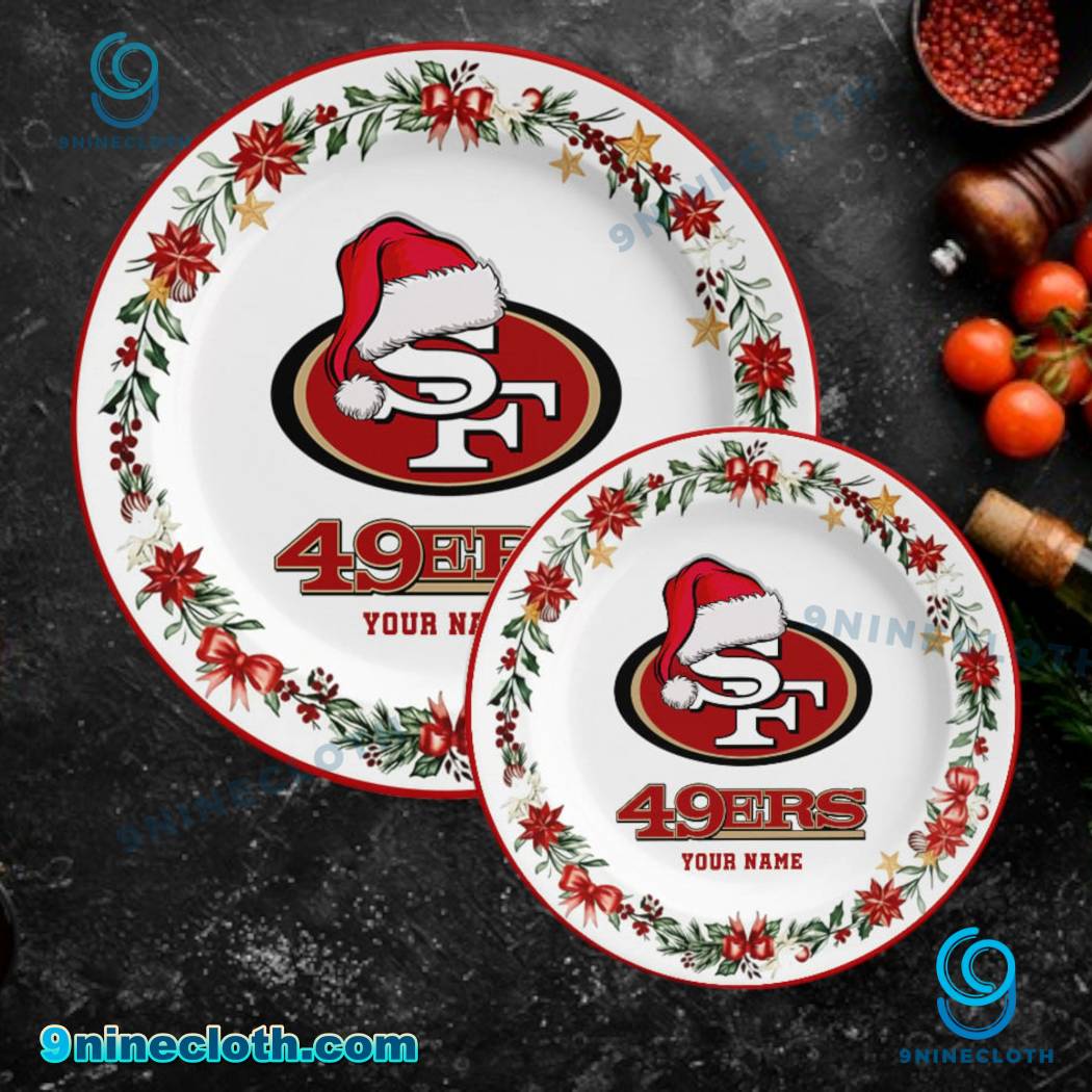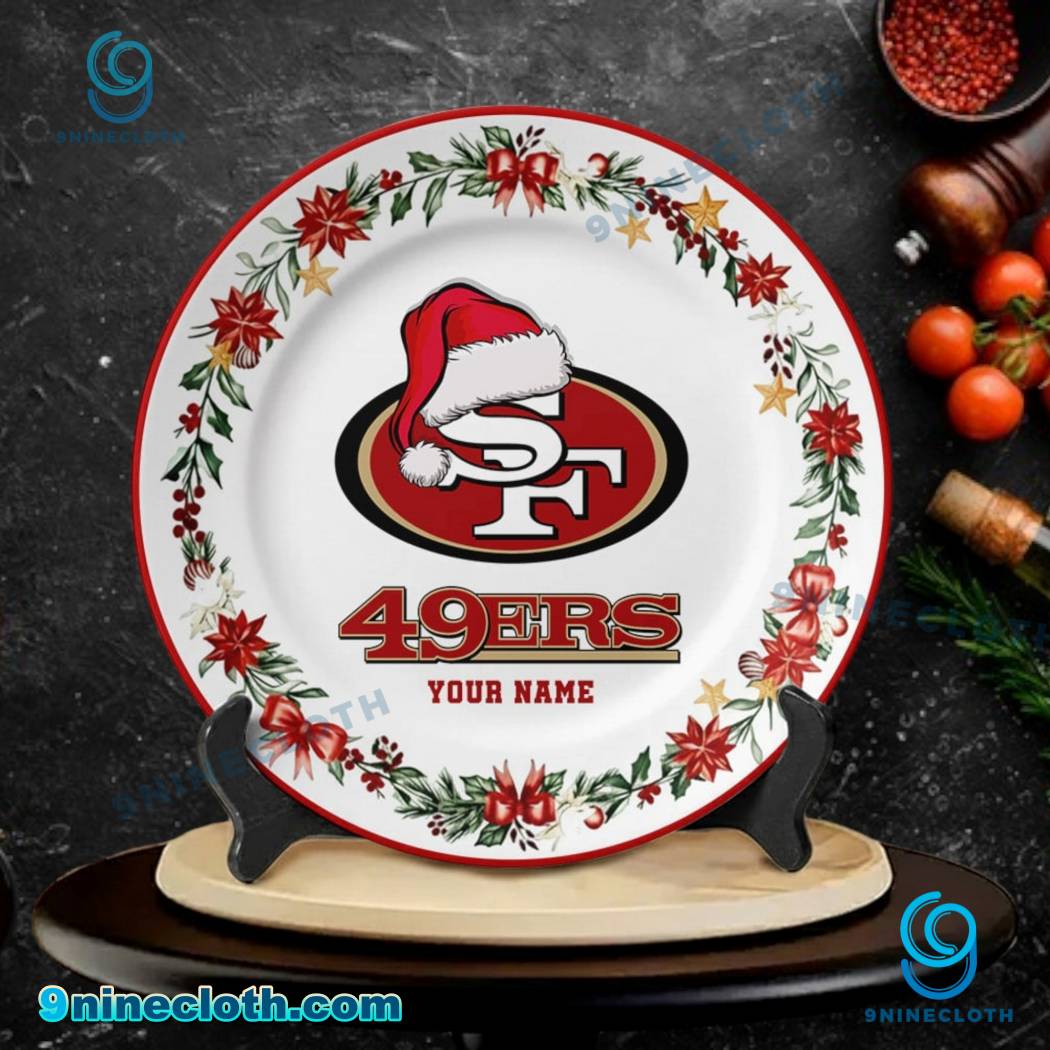 Keywords: San Francisco 49ers, 49ers, Christmas, Ceramic Plate, Personalized Gift, Holiday Decor, NFL, Football, Team Spirit, Gift for 49ers Fan, 9ninecloth, Festive, Holidays, Unique Design.