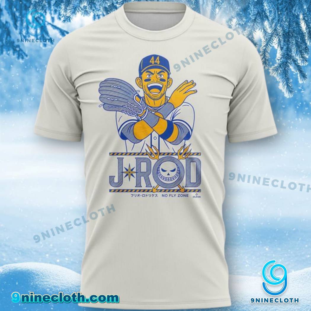 Keywords: Seattle Mariners, Julio Rodriguez, J-Rod, No Fly Zone, Mariners T-shirt, Mariners apparel, MLB, baseball shirt, Seattle baseball, fan gear, 9ninecloth.