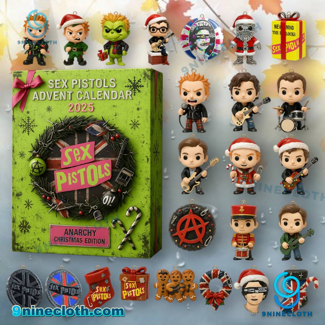 Keywords: Sex Pistols, Advent Calendar, Christmas, Anarchy, Punk Rock, Ornaments, Handmade, Holiday, Music, Gift, 9ninecloth, 2025, Limited Edition, Collectible