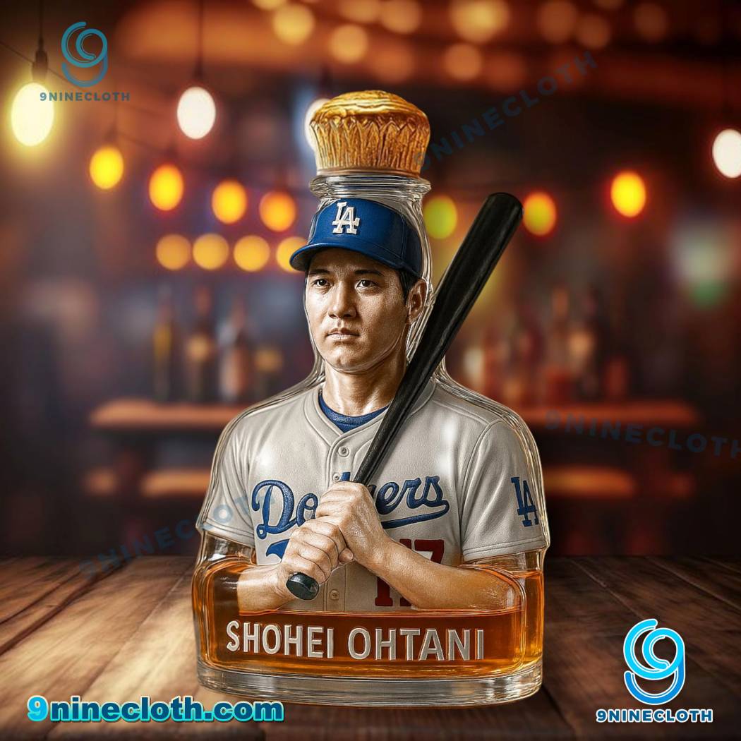 Keywords: Shohei Ohtani, Ohtani, Los Angeles Dodgers, 2025 NLCS MVP, whiskey bottle, sports memorabilia, baseball gifts, custom glass bottle, home bar, unique glassware.